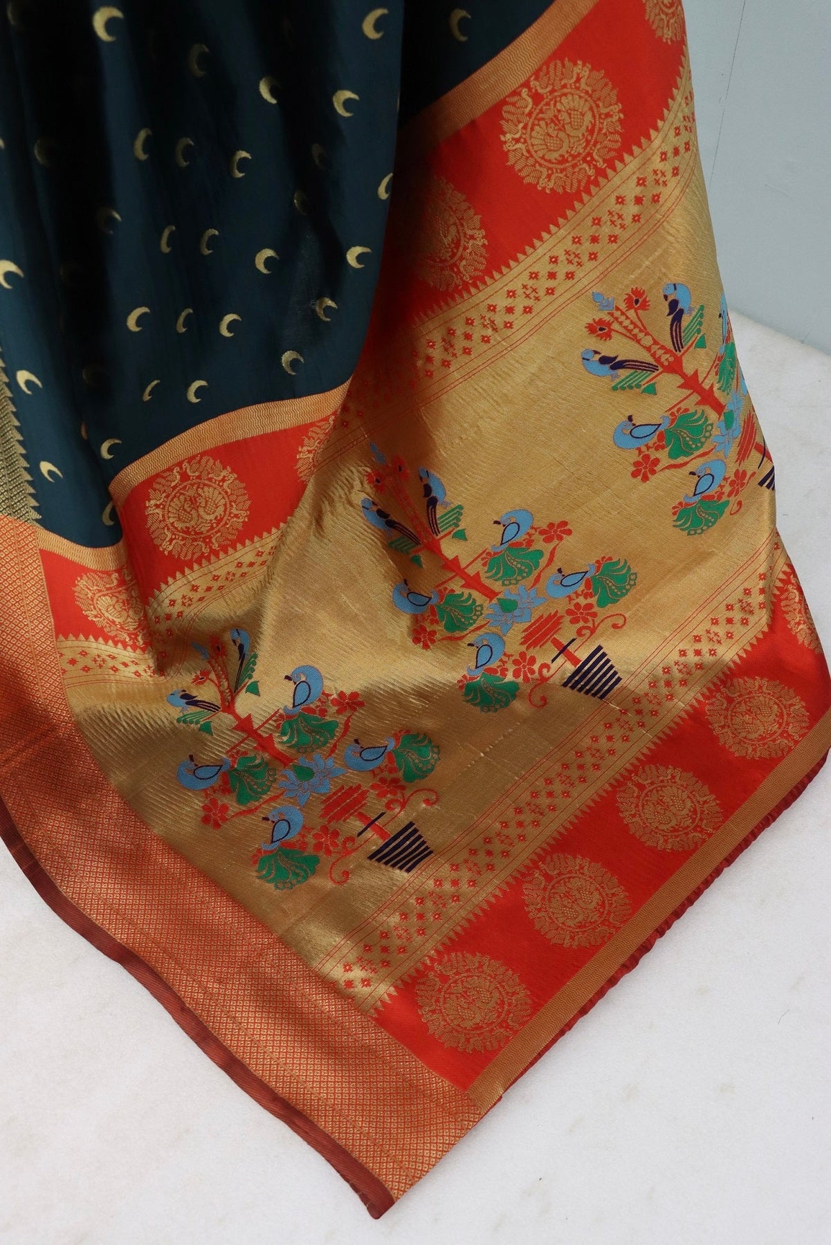 Party Wear Jari Weaving Worked Paithani Silk Saree With Un Stitched Blouse