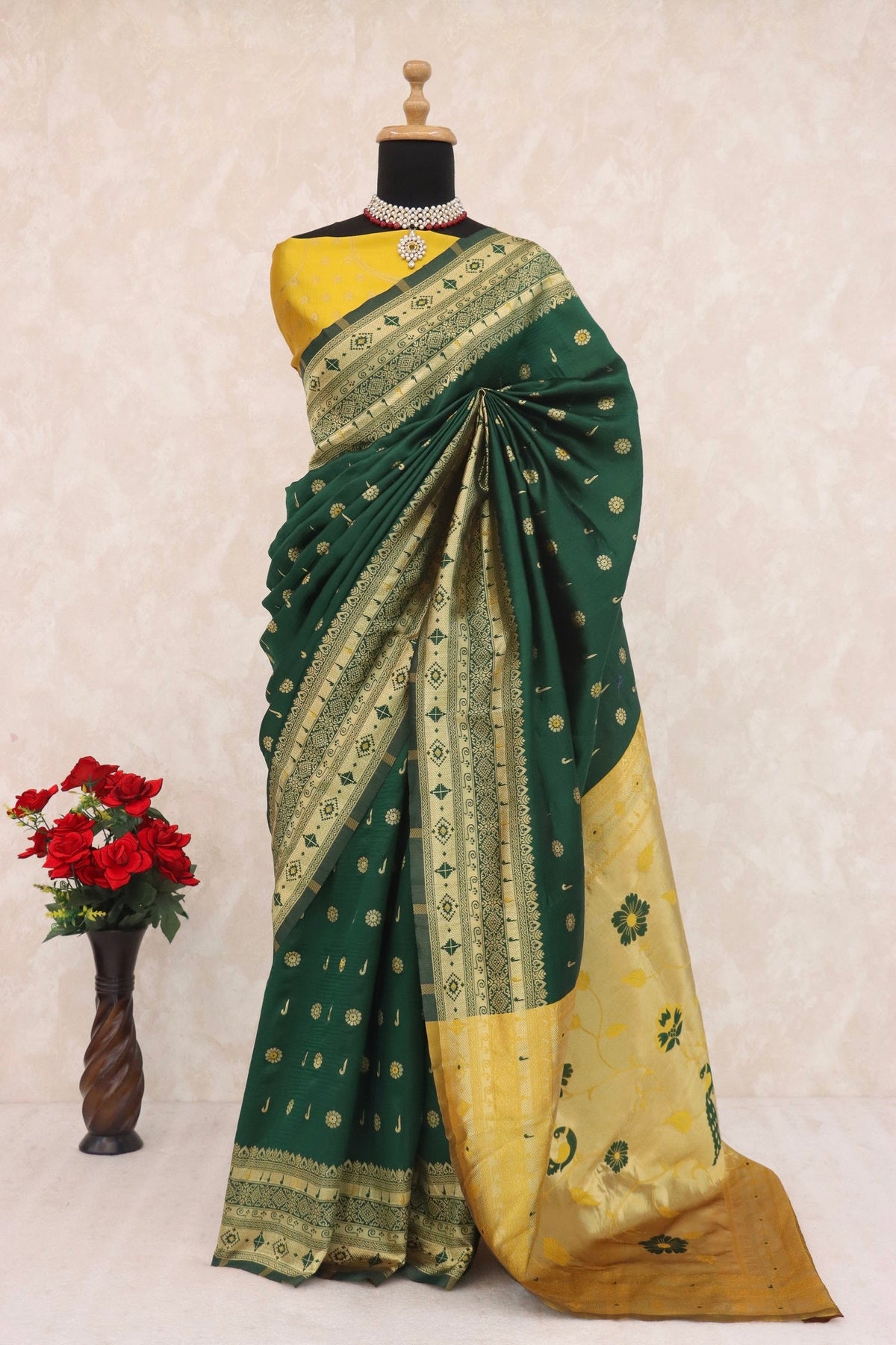Party Wear Jari Weaving Worked Paithani Silk Saree With Un Stitched Blouse
