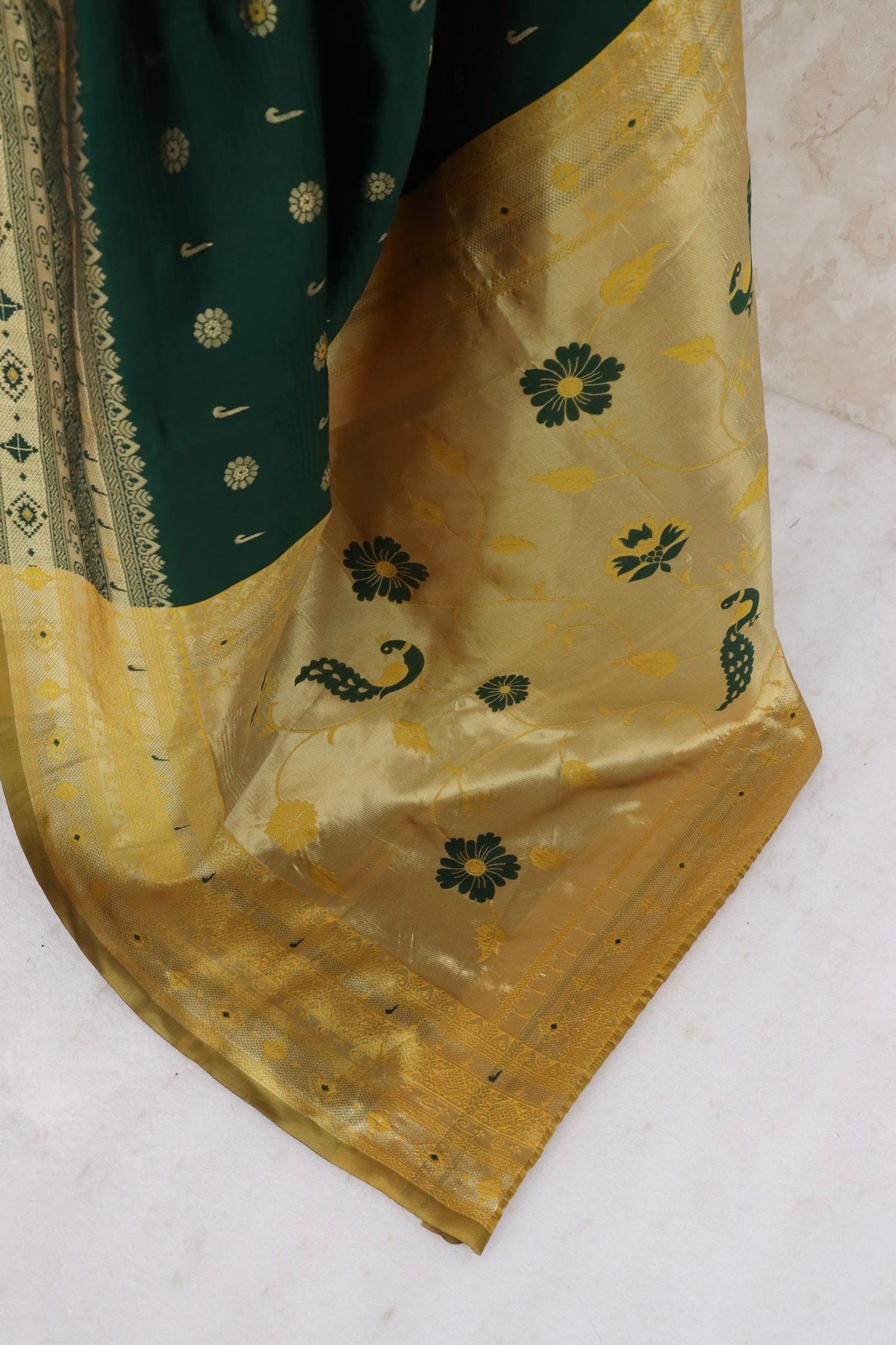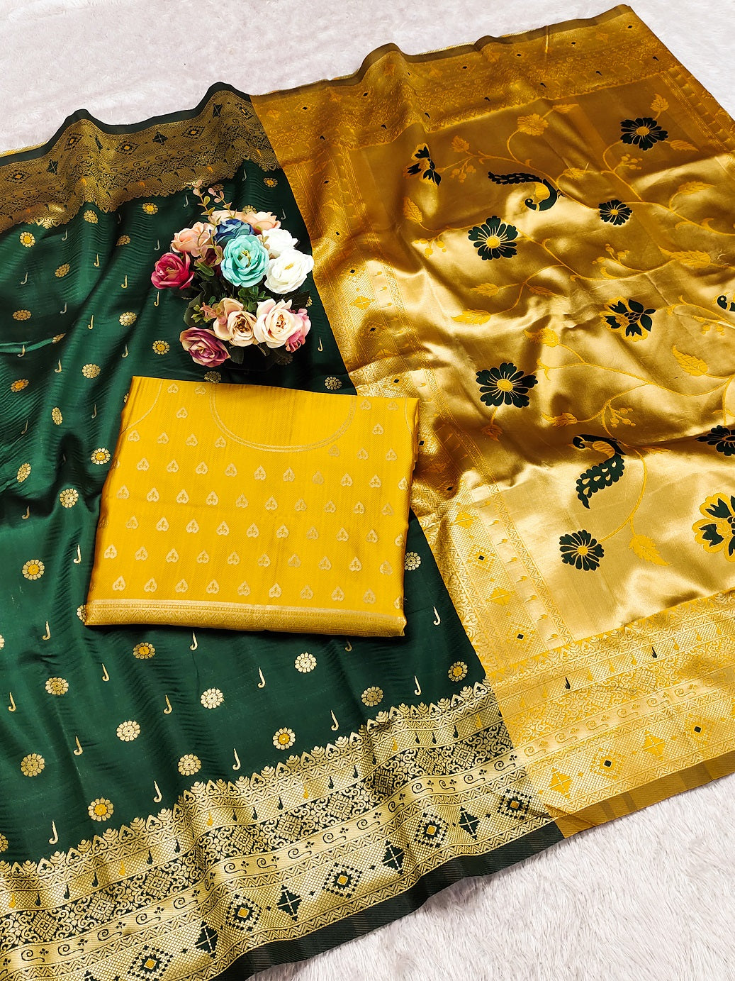 Women's Party Wear Jari Weaving Worked Paithani Silk Saree With Un Stitched Blouse