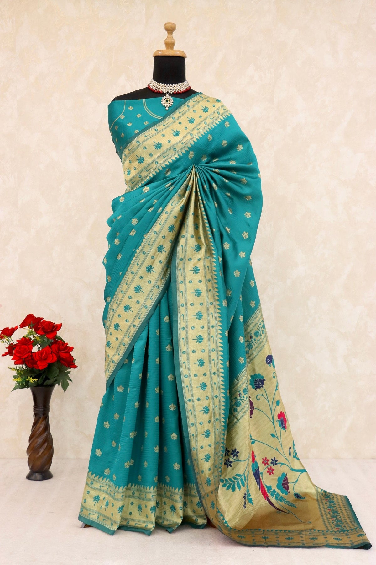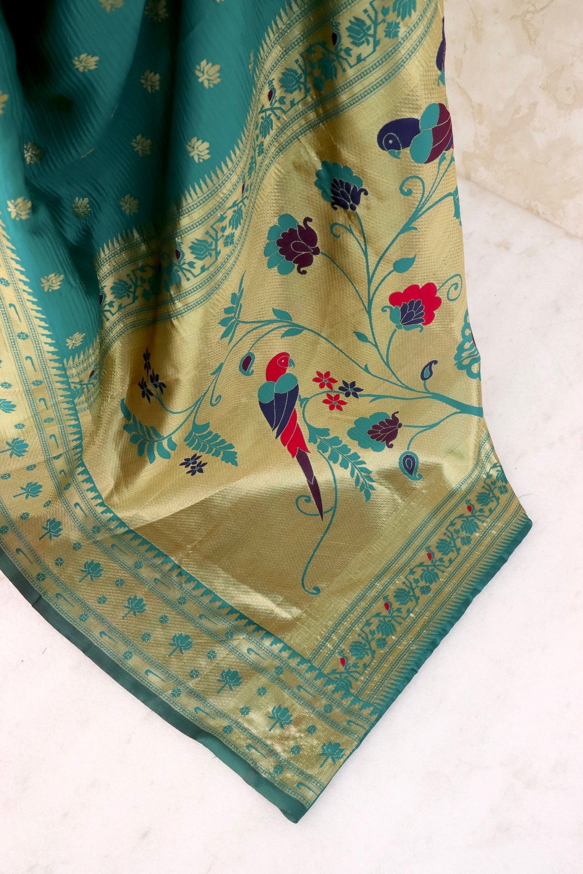 Party Wear Jari Weaving Worked Paithani Silk Saree With Un Stitched Blouse