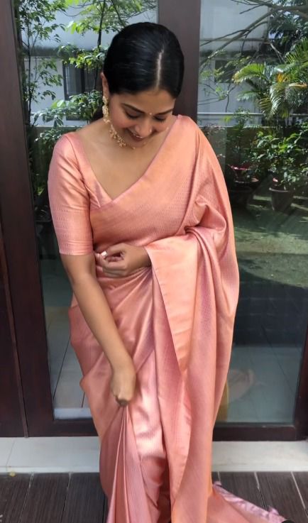 Jacquard Lichi Silk Peach Saree With Unstiched Blouse Piece