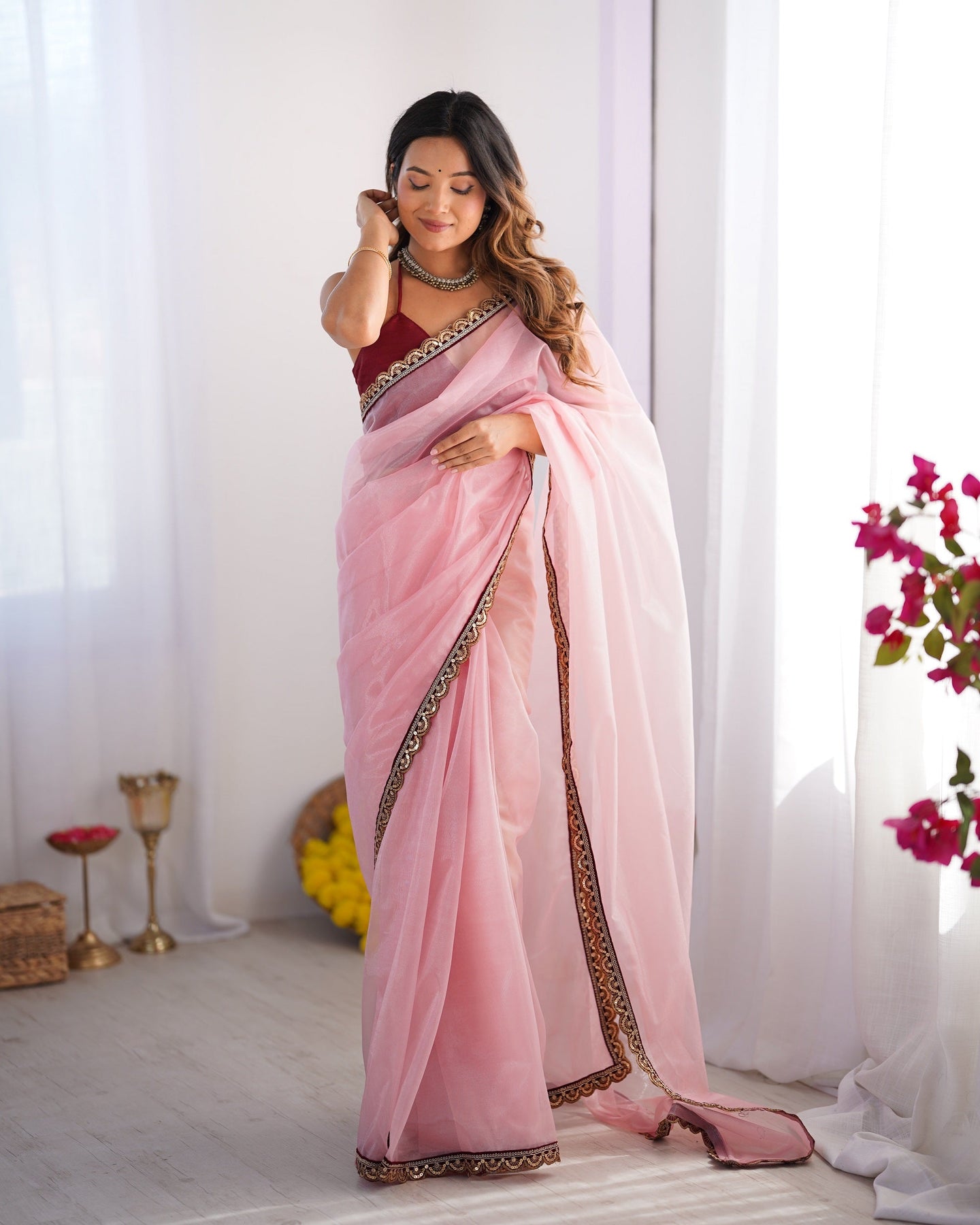 Wedding Wear Plain Ccolour Shade Twill Net Saree With Un Stithed Blouse