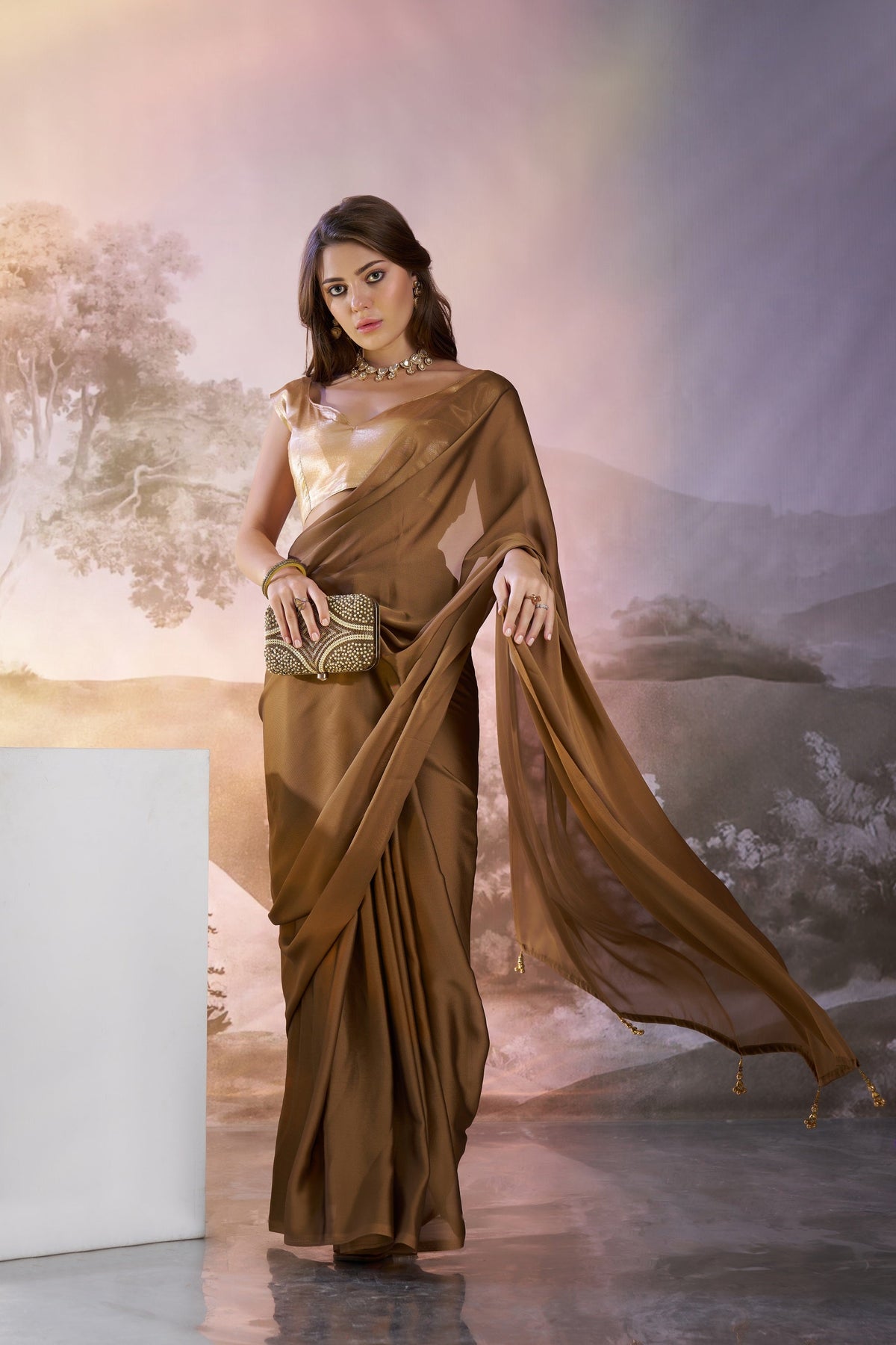 Party Wear Satin Rangoli Saree With Un Stitched Blouse