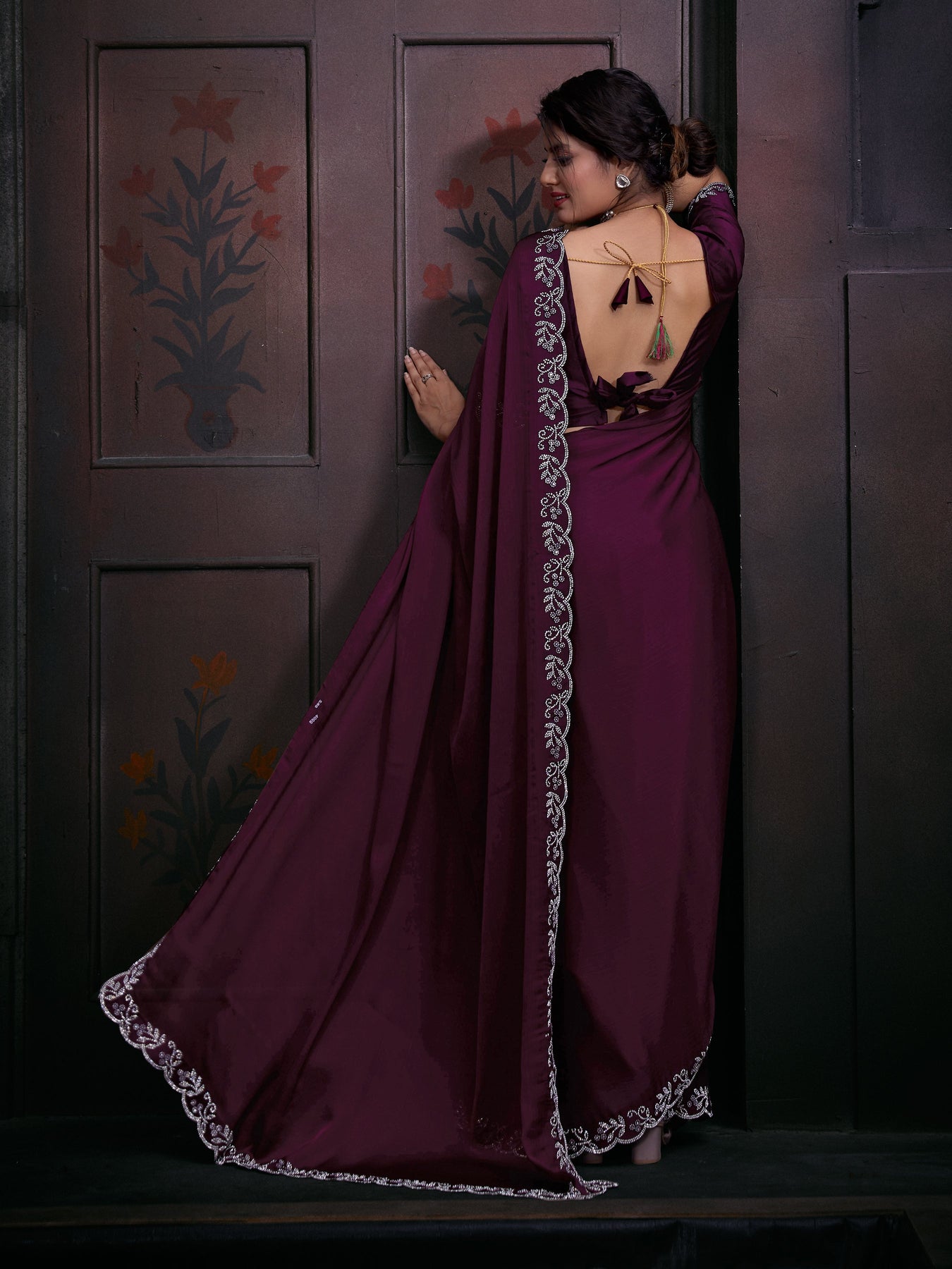 Women's Dusty Pure Chiffon Zircon Cutwork Saree - PR Fashion