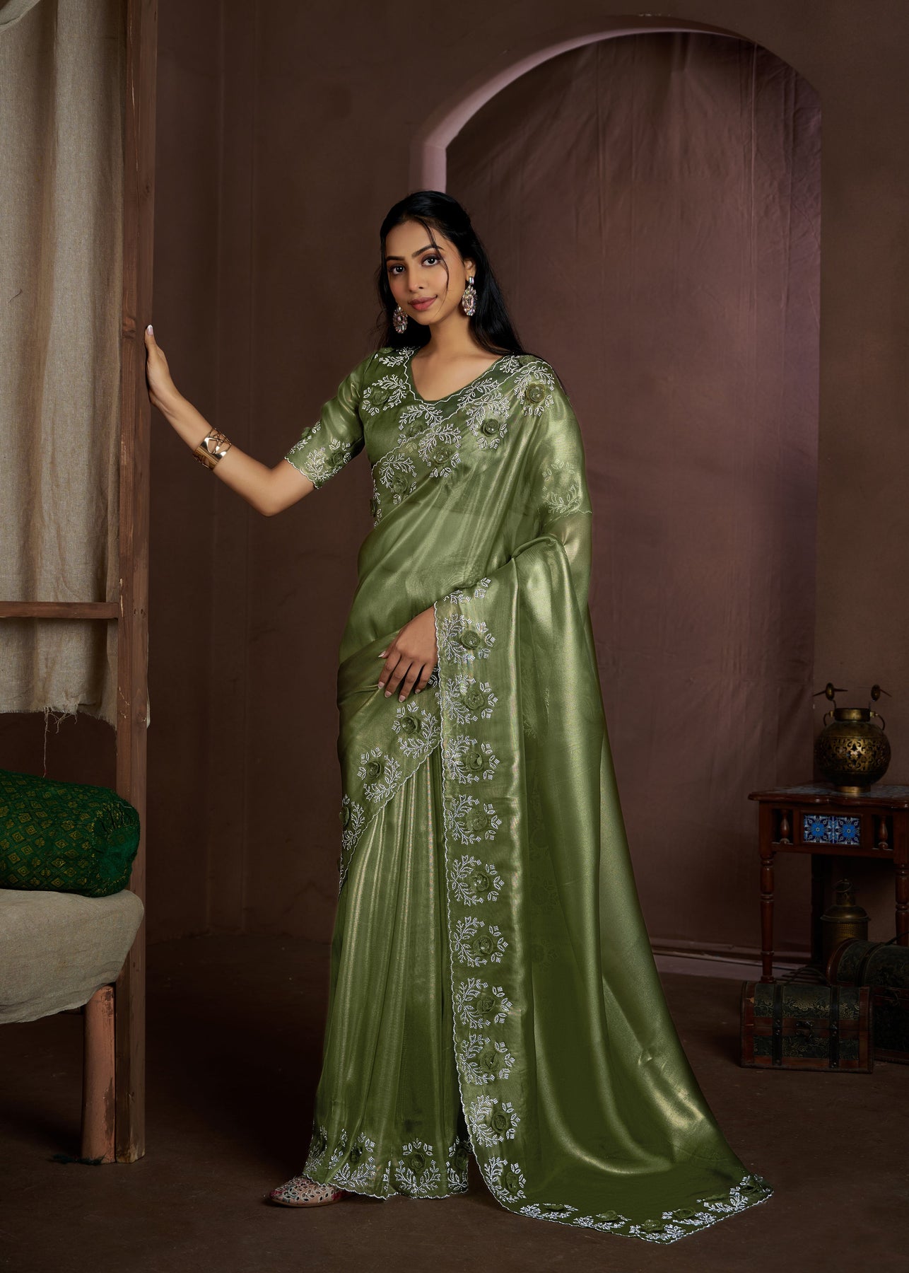 Work :Heavy Zircon Work With Siqvence Applique Flower