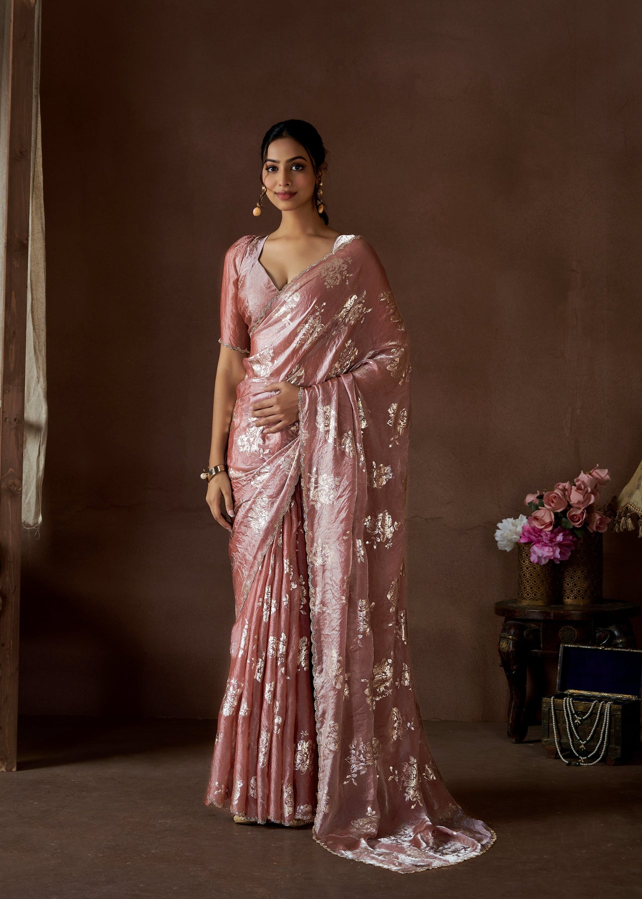 Work :Heavy Zircon Border With Foil Print