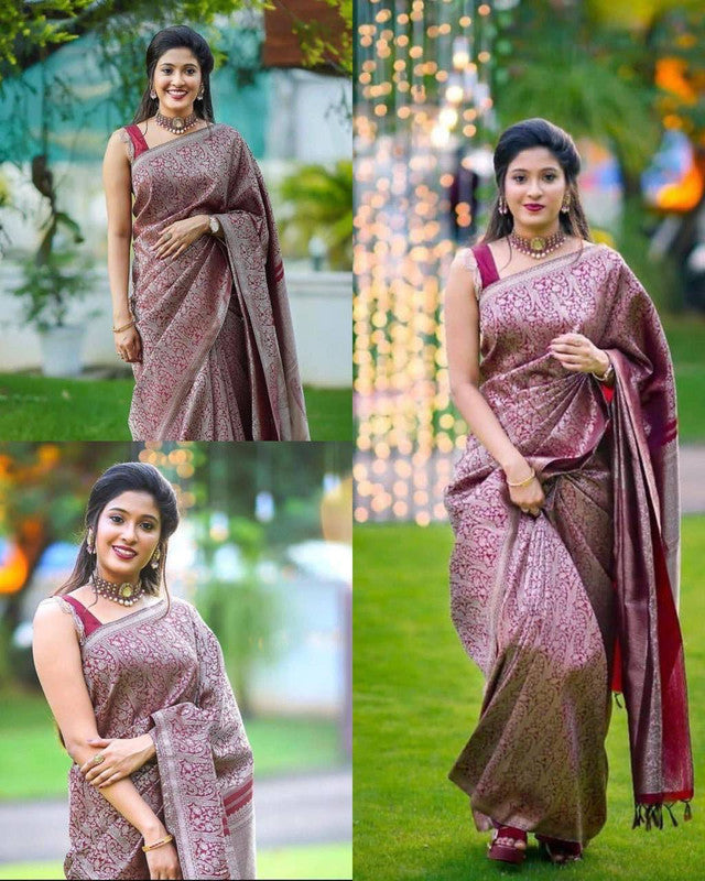 Women's Wine Banarasi Silk Woven Jacquard Sarees