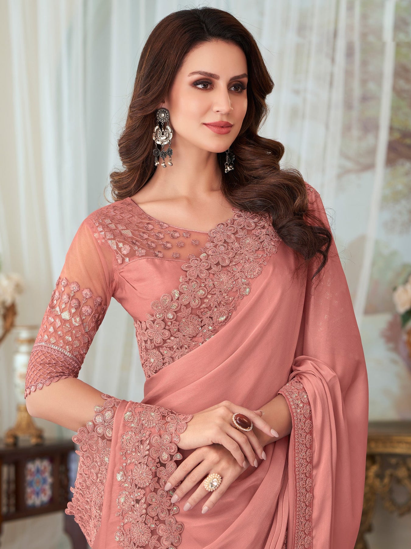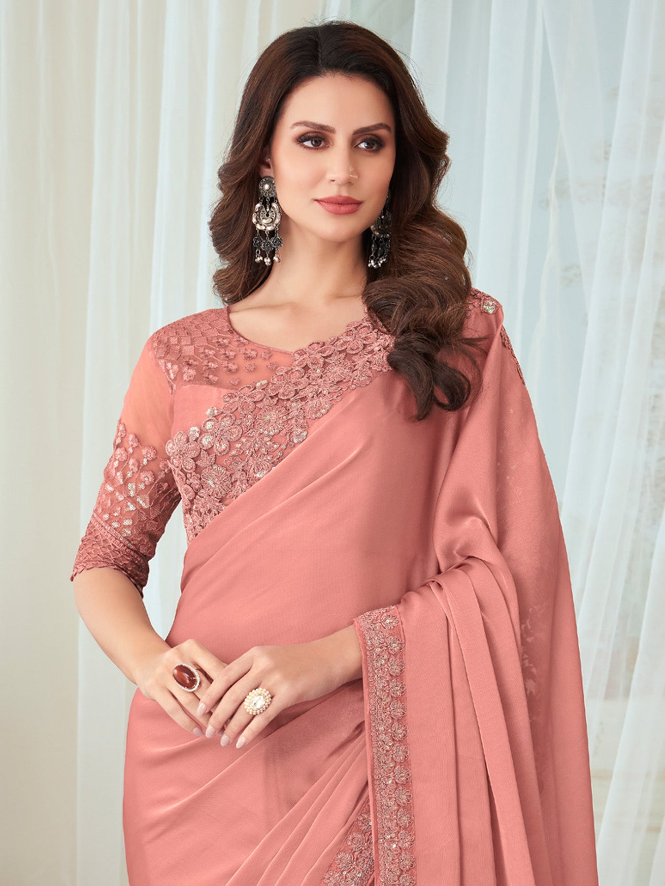 This Saree From The House Of Saree Mall Is Made From Silk Blend And Is Peach In Color. Saree Mall Ethnic Sarees Comes With Blouse Piece, Which Can Be Stitched According To Your Taste And Preference. This Saree Is Crafted By Skill Craftsmen Without Compromising On Its Quality. With This Beautiful Design And Fabric, This Saree Will Fetch You Oodles Of Compliments And Praise. Saree Fit Size Is 5.5 Mtr Saree & 0.8 Mtr Blouse, Free Size |.