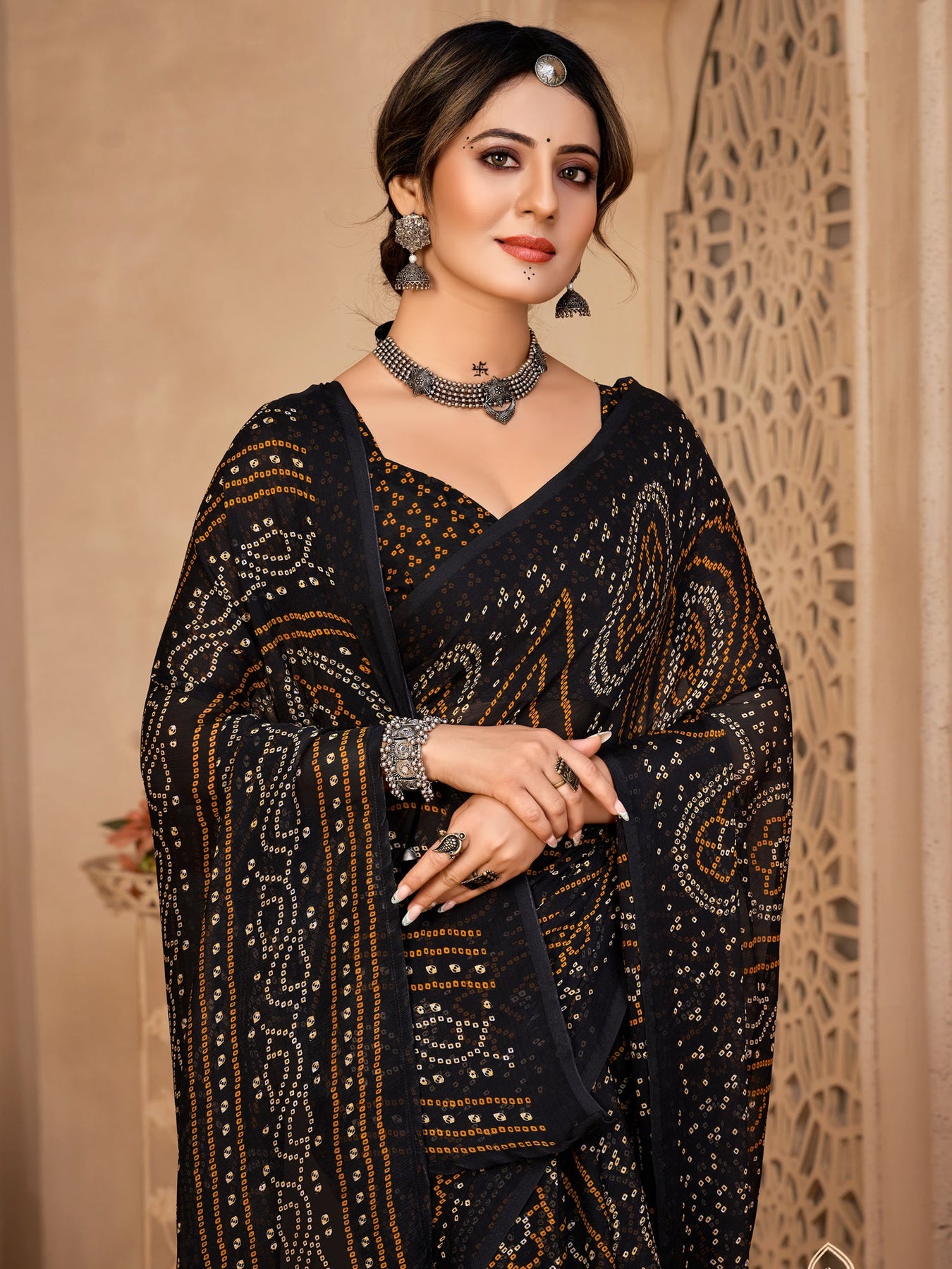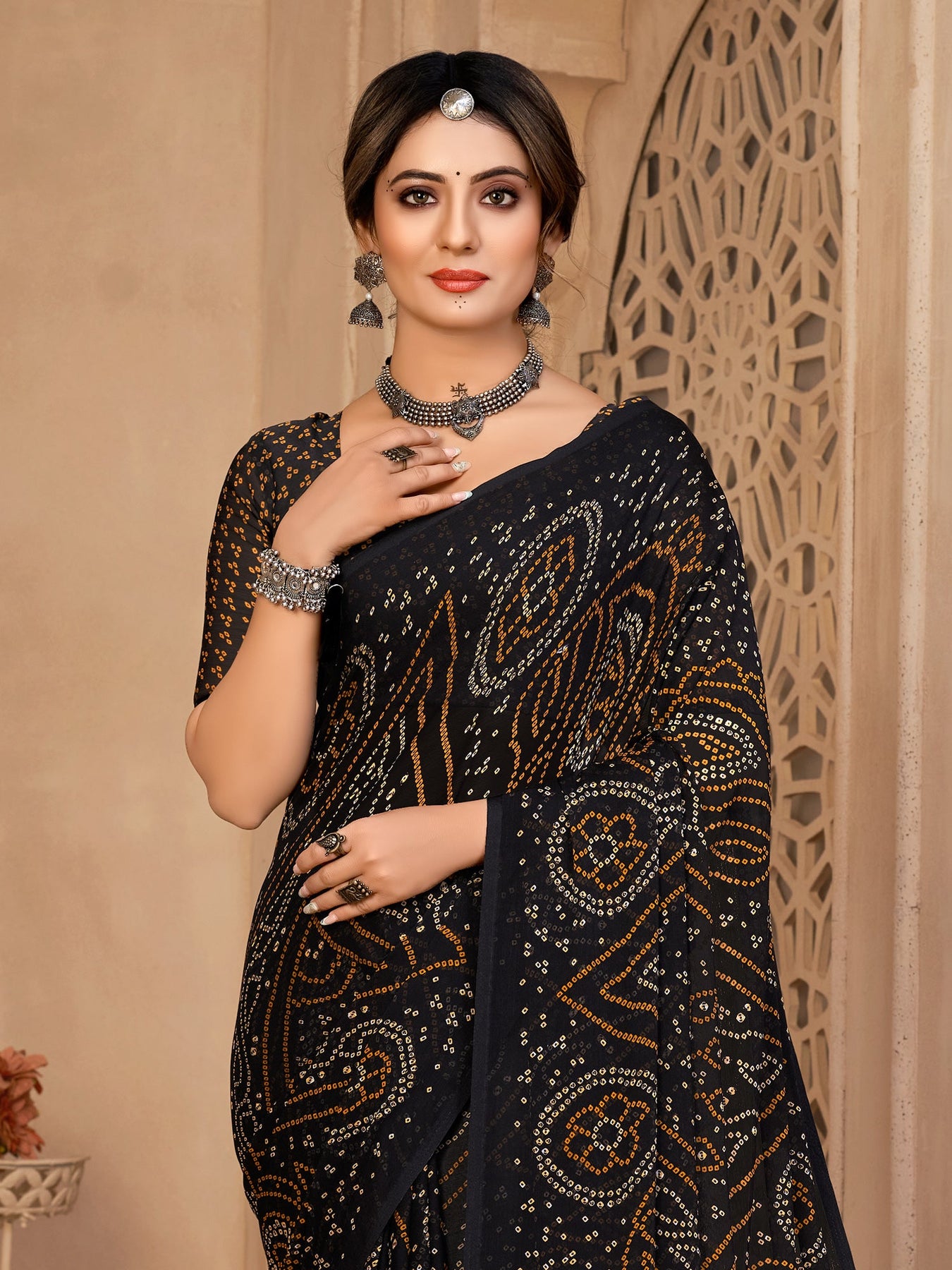 This Saree From The House Of Saree Mall Is Made From Chiffon And Is Black In Color. Saree Mall Ethnic Sarees Comes With Blouse Piece, Which Can Be Stitched According To Your Taste And Preference. This Saree Is Crafted By Skill Craftsmen Without Compromising On Its Quality. With This Beautiful Design And Fabric, This Saree Will Fetch You Oodles Of Compliments And Praise. Saree Fit Size Is 5.5 Mtr Saree & 0.8 Mtr Blouse, Free Size |.
