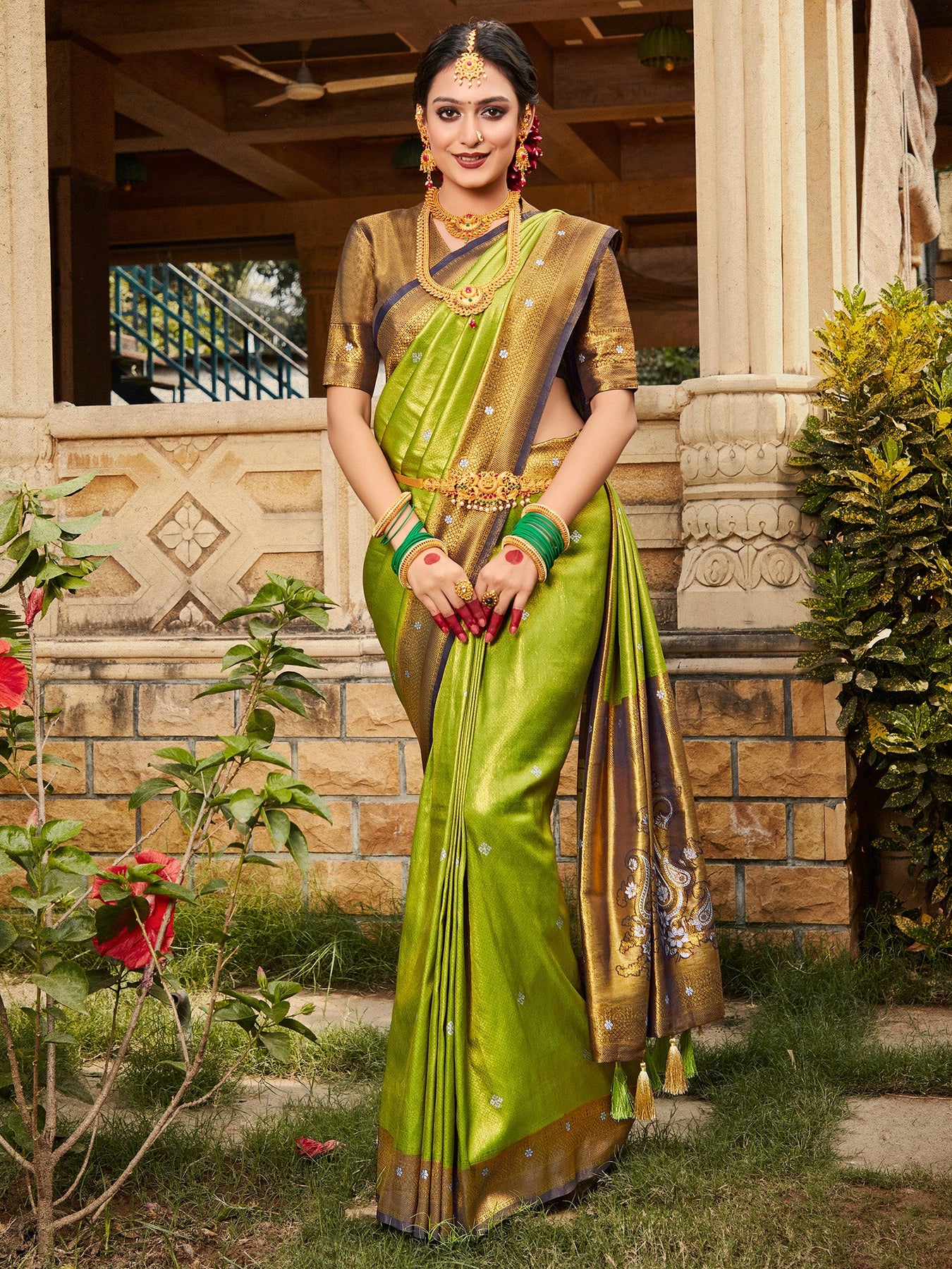 This Saree From The House Of Saree Mall Is Made From Kanjeevaram Silk And Is Green In Color. Saree Mall Ethnic Sarees Comes With Blouse Piece, Which Can Be Stitched According To Your Taste And Preference. This Saree Is Crafted By Skill Craftsmen Without Compromising On Its Quality. With This Beautiful Design And Fabric, This Saree Will Fetch You Oodles Of Compliments And Praise. Saree Fit Size Is 5.5 Mtr Saree & 0.8 Mtr Blouse, Free Size |.