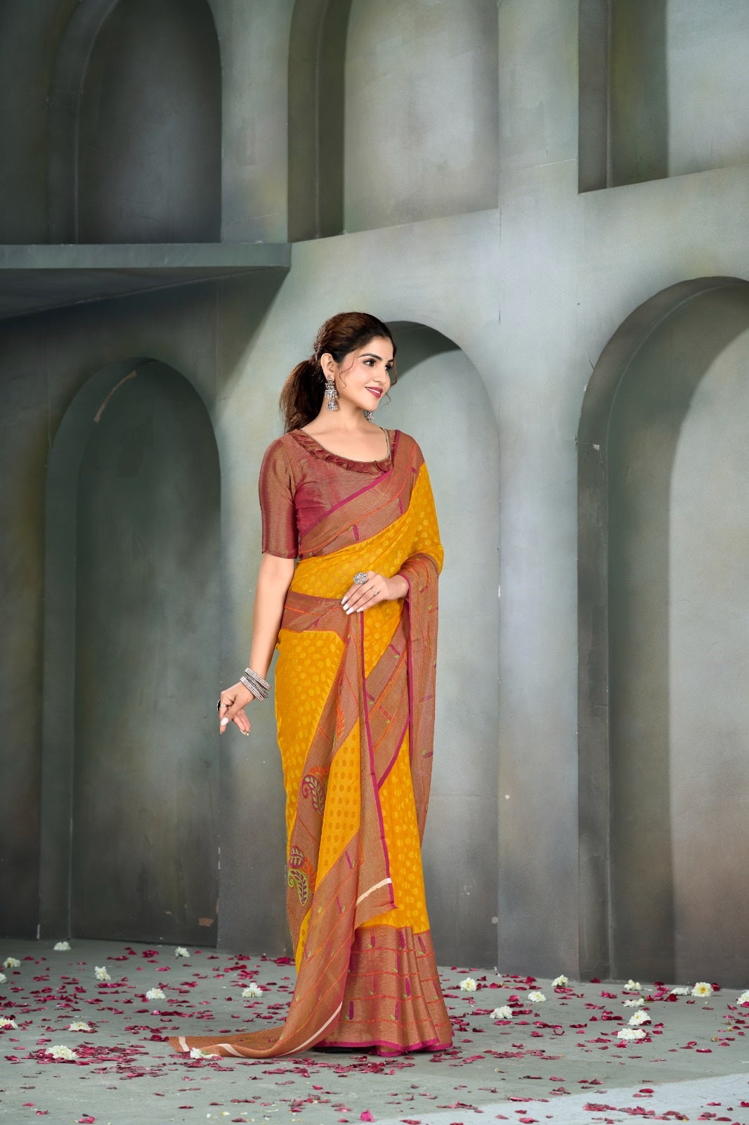 Casual Wear Printed Brasso Silk Saree With Un Stitched Blouse