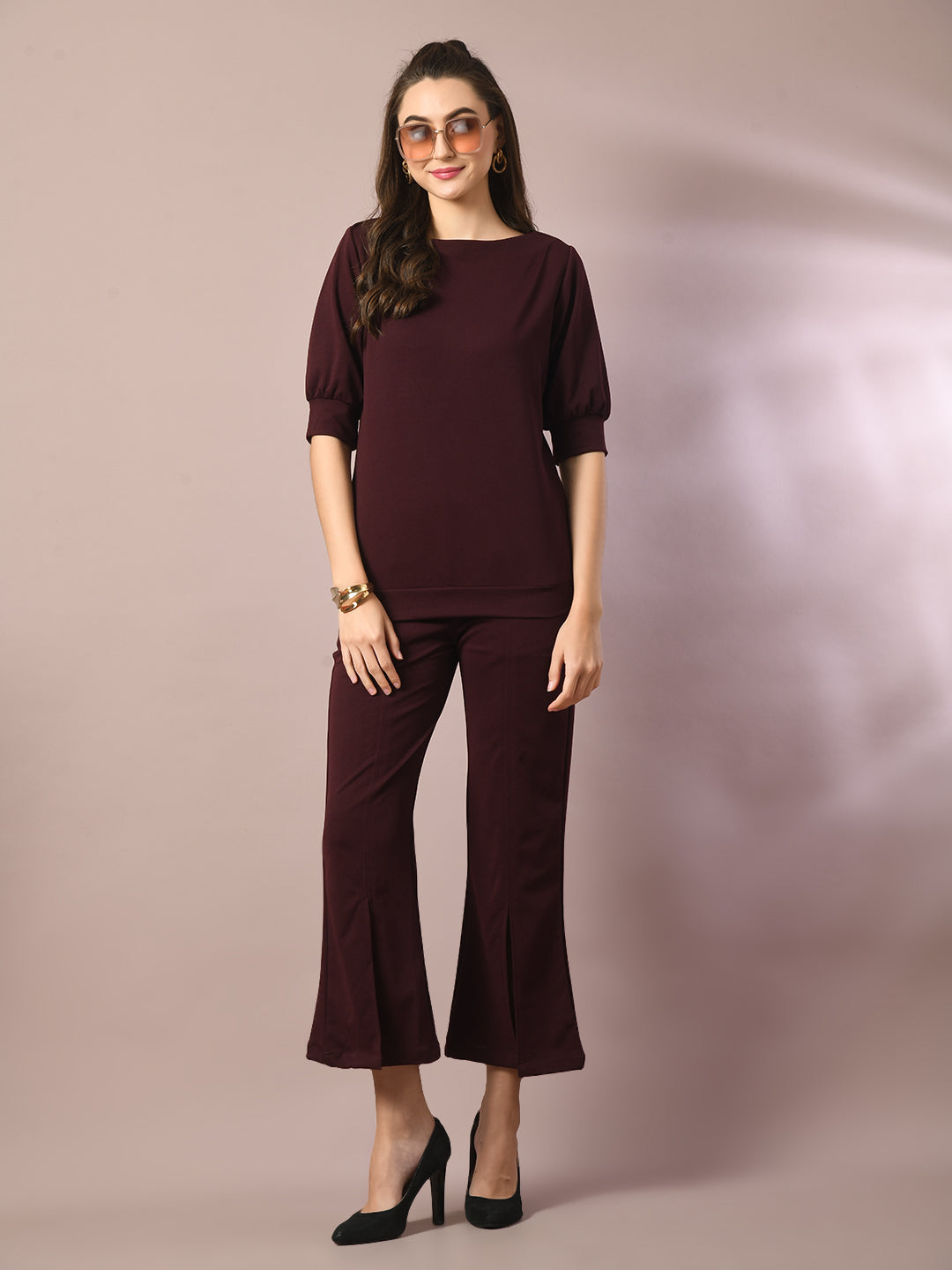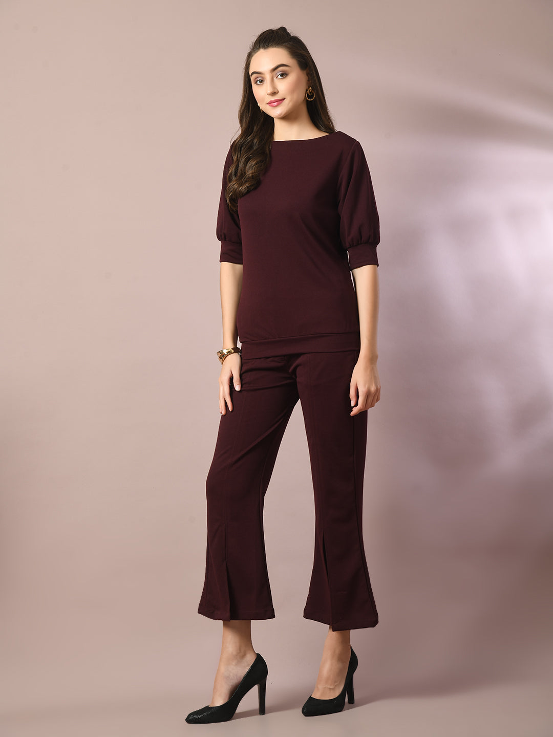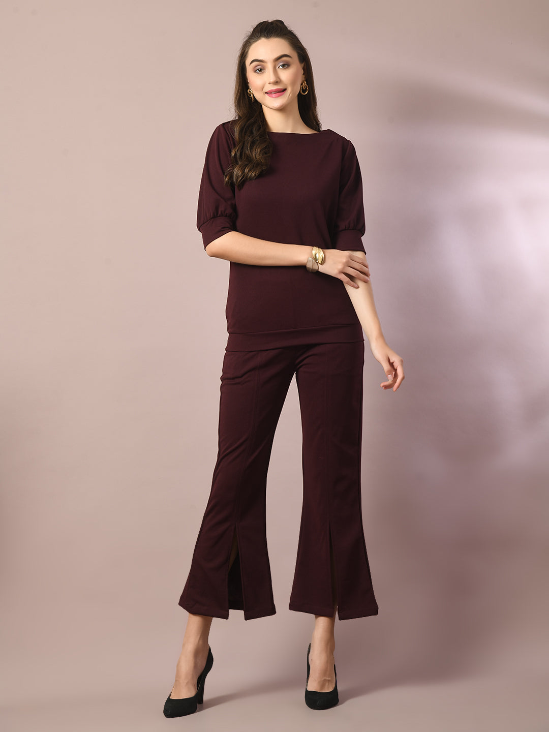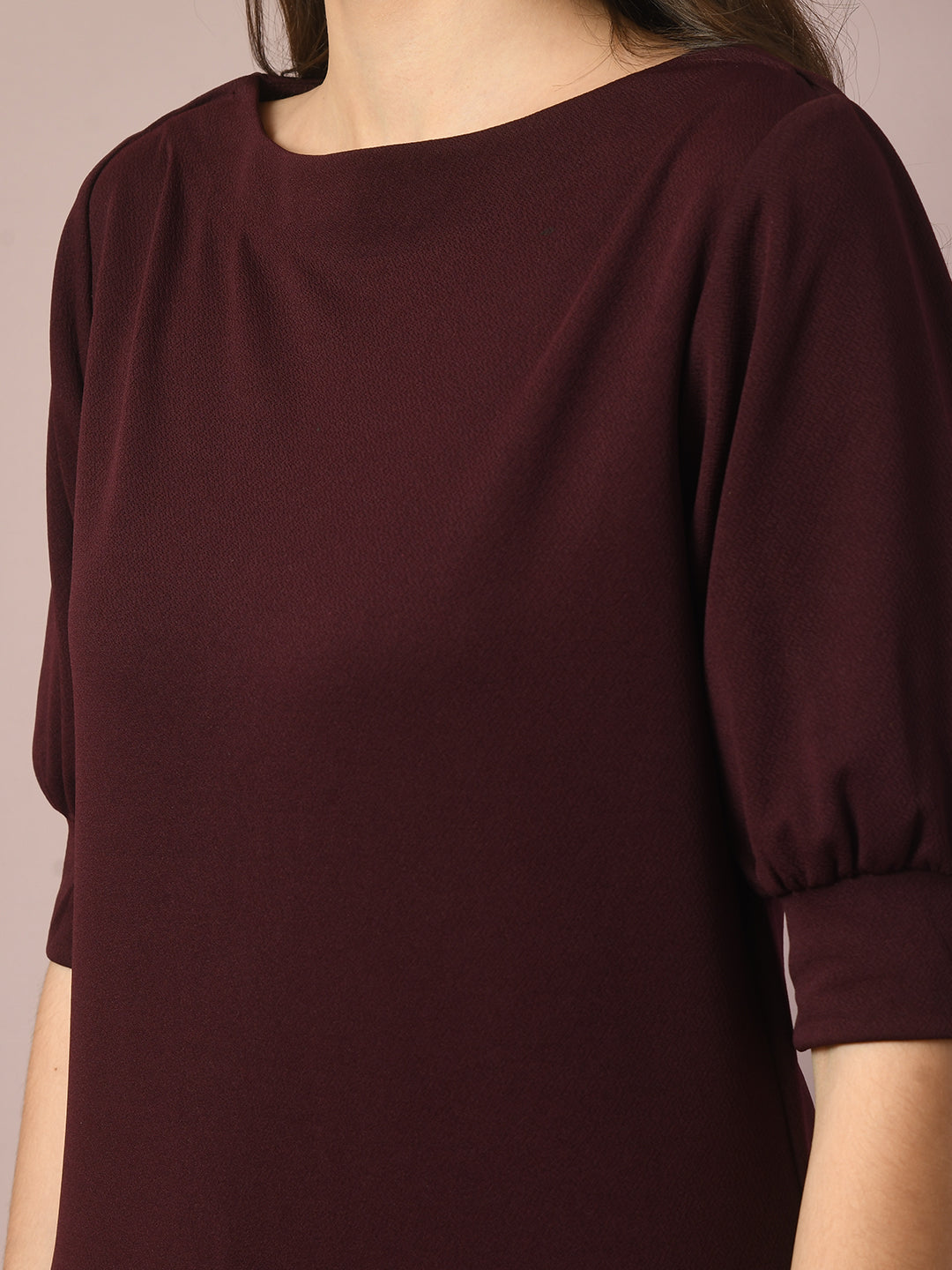 Women Coffee Brown Solid Boat Neck Party Top