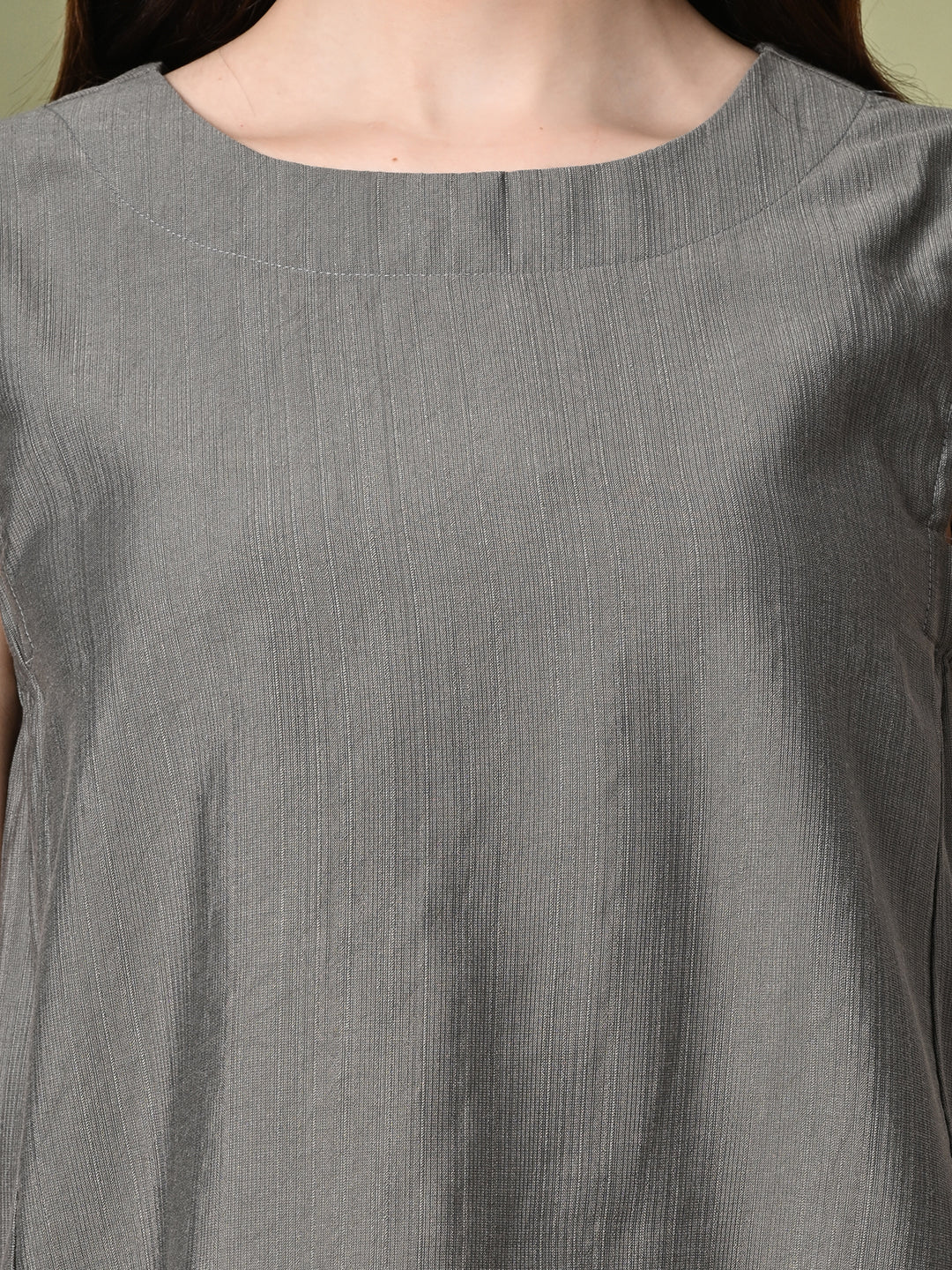 Solid Embellished Sleeveless Round Neck Casual Tops In Grey Colour