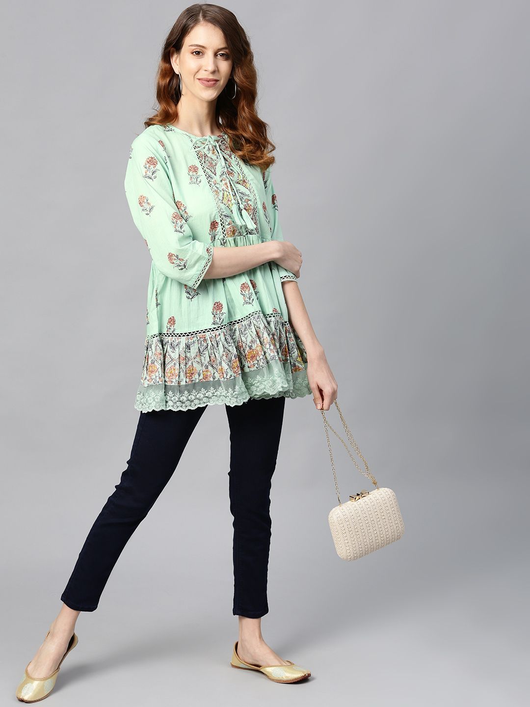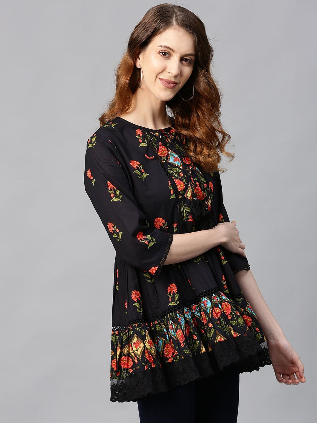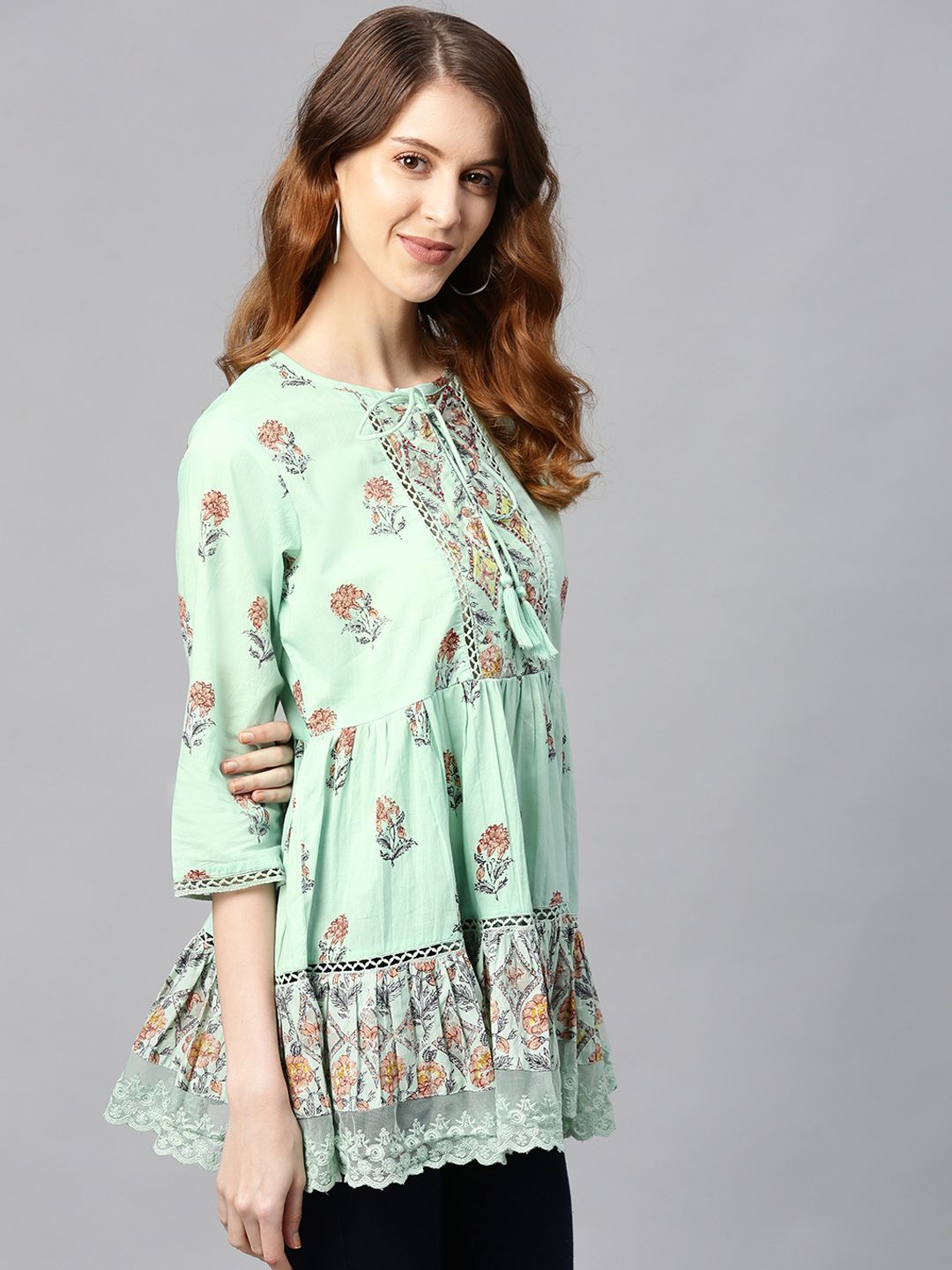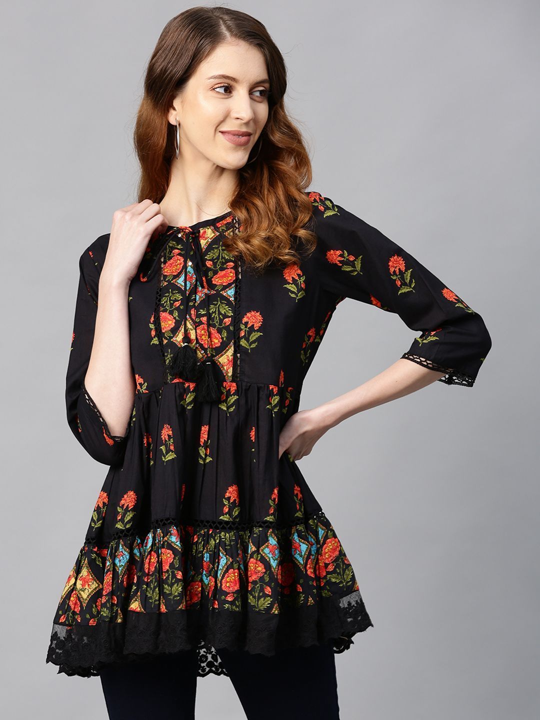 Product Description :Juniper  Cambric Embroidered Tiered Top