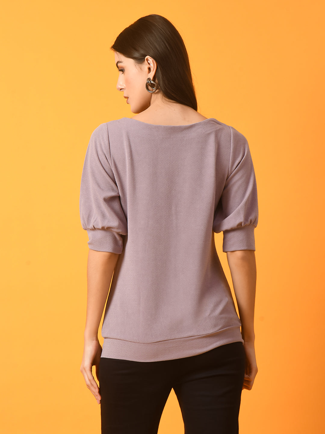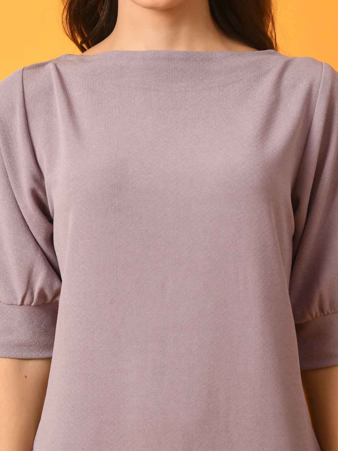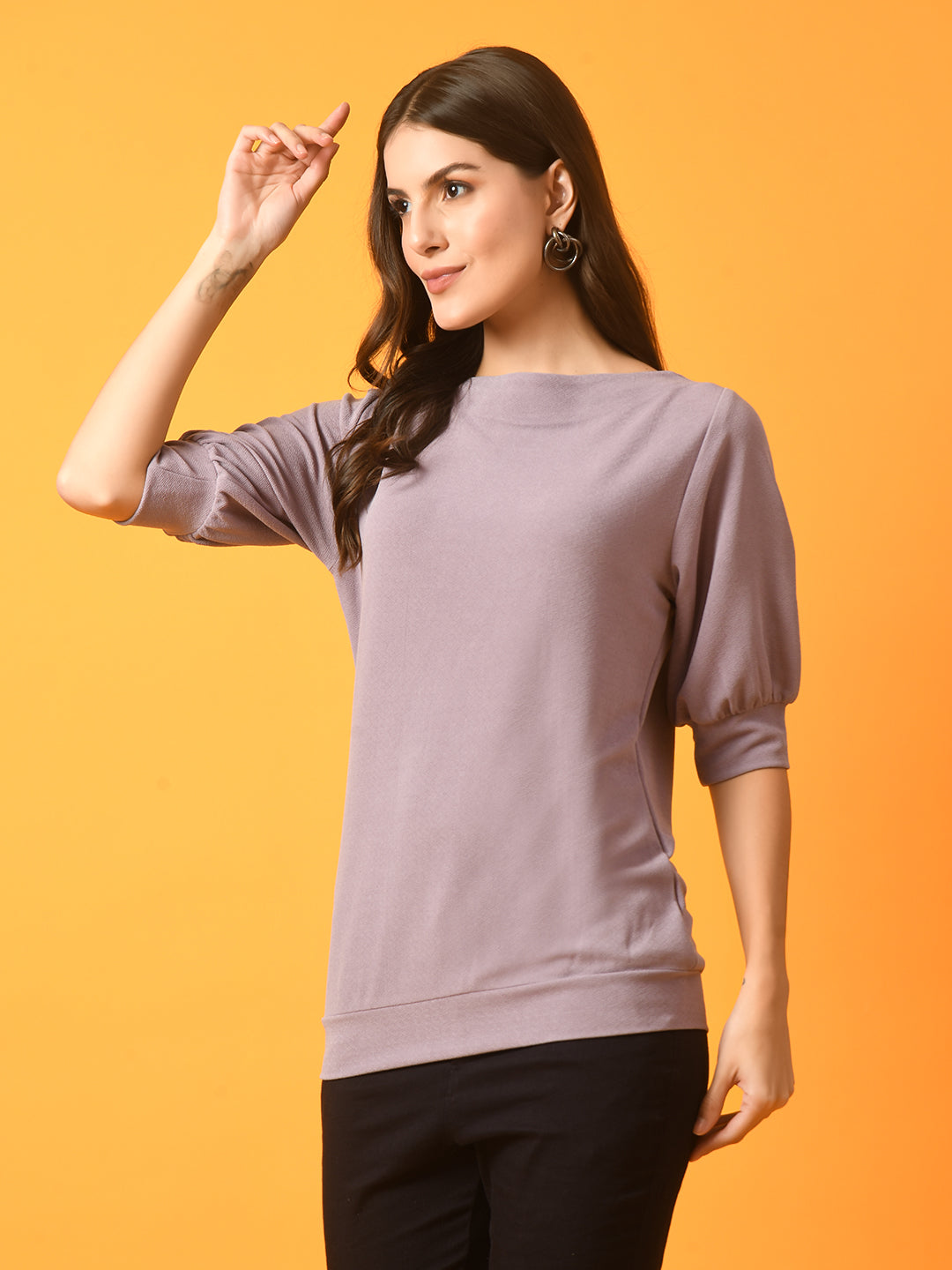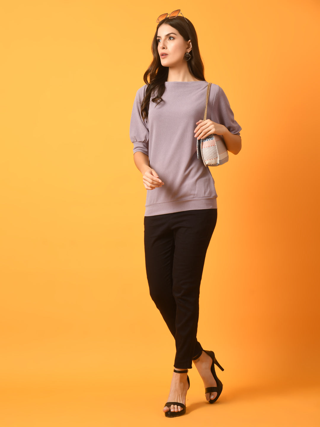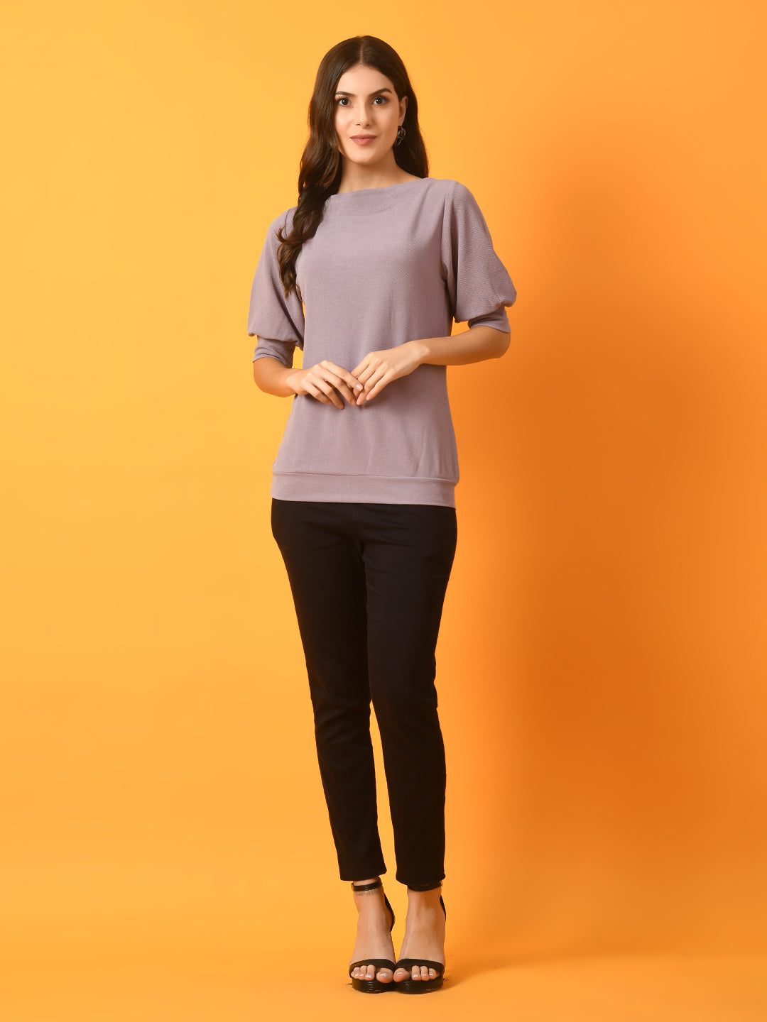 Fabric :Polyester Pattern :Solid Length :Regular Sleeves :Short Sleeves Neck :Boat Neck Sleeve Style :Puff Sleeves