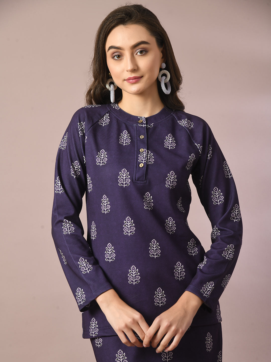 Women Navy Blue Embellished Raglan Sleeve Party Top