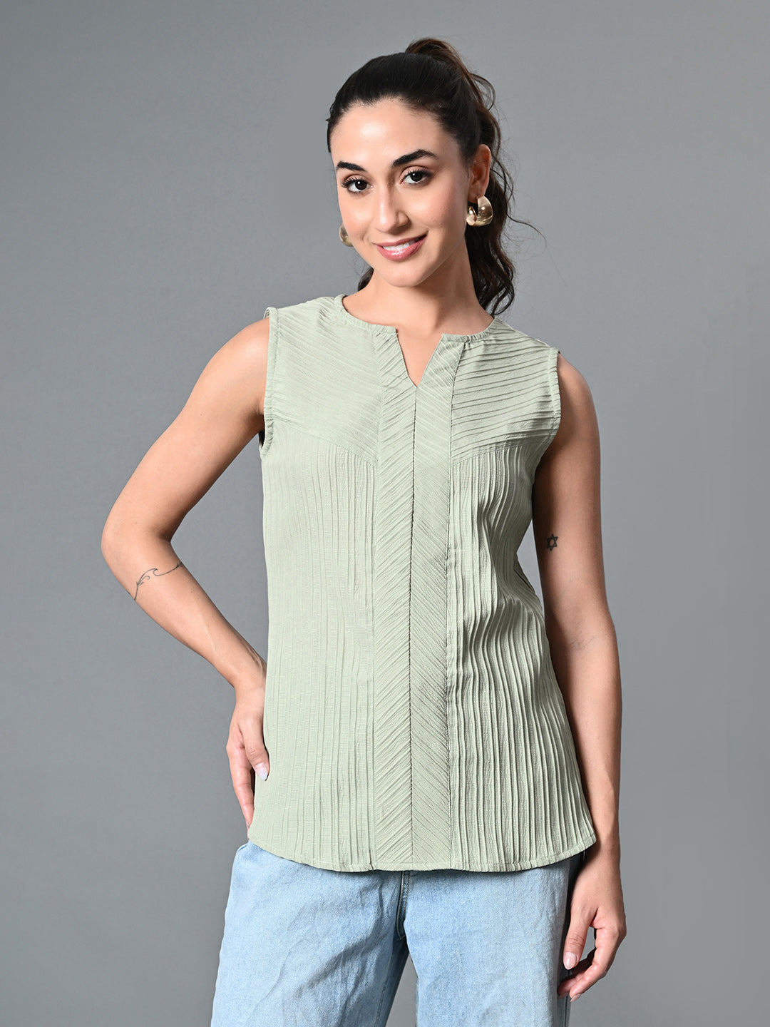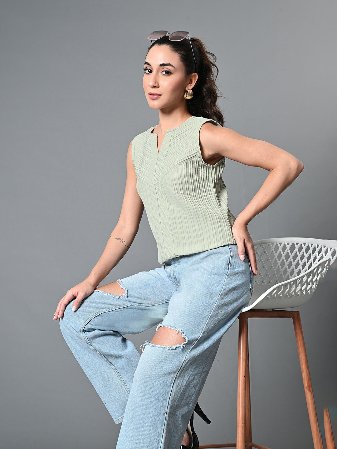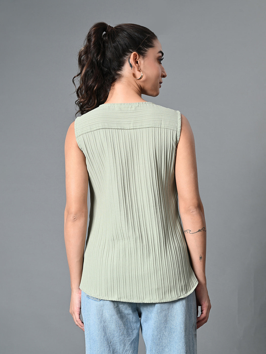 Keyhole Neck Sleeveless Casual Top In Olive Color