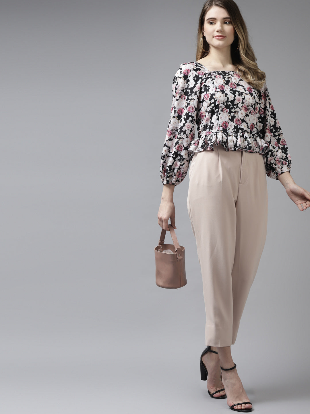 Blue Printed Top With Long Sleeve,Square Neck Line, Smoking Elastic Fiting On Back Yoke