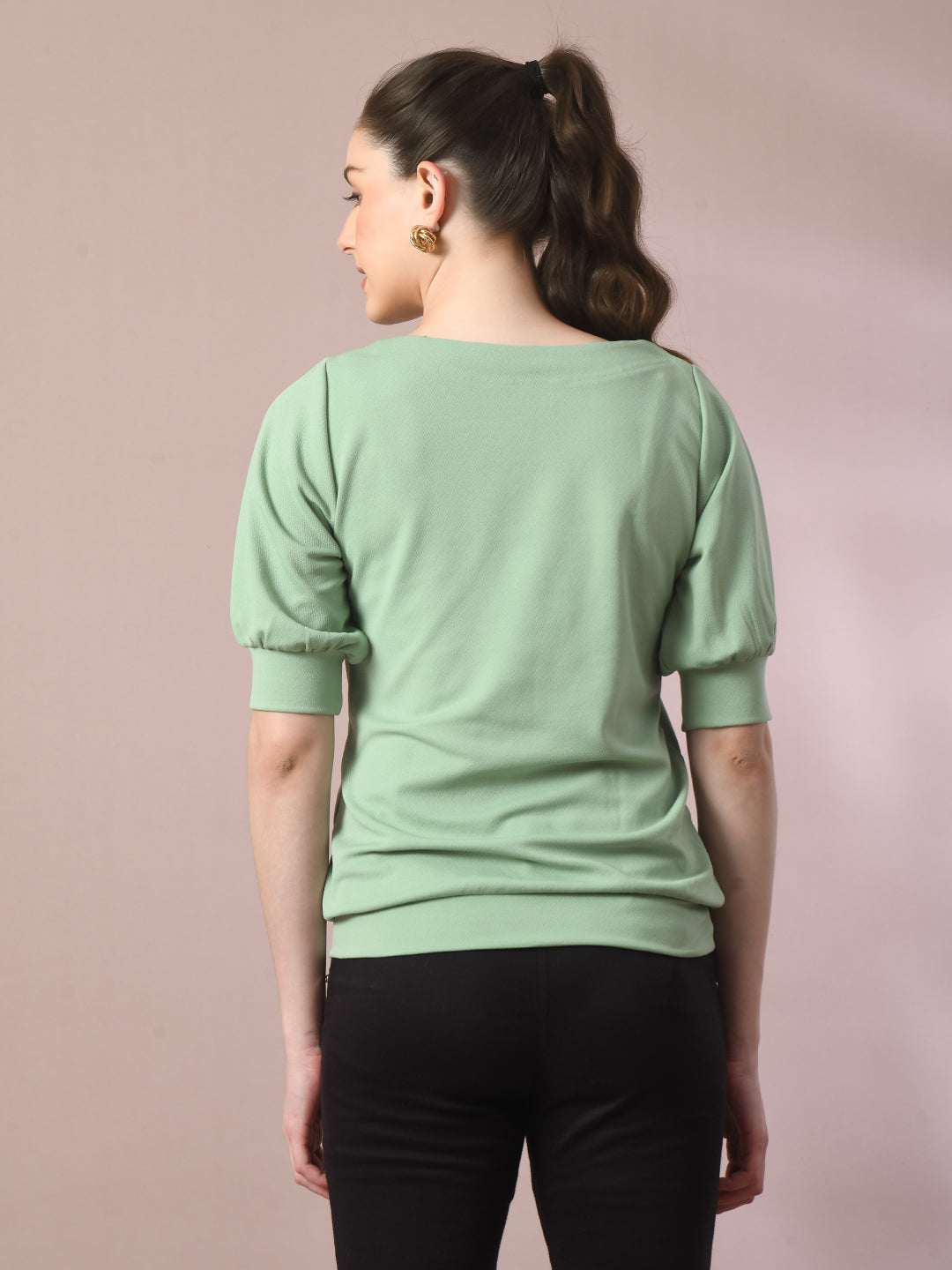 Fabric :Polyester Pattern :Solid Length :Regular Sleeves :Short Sleeves Neck :Boat Neck Sleeve Style :Puff Sleeves