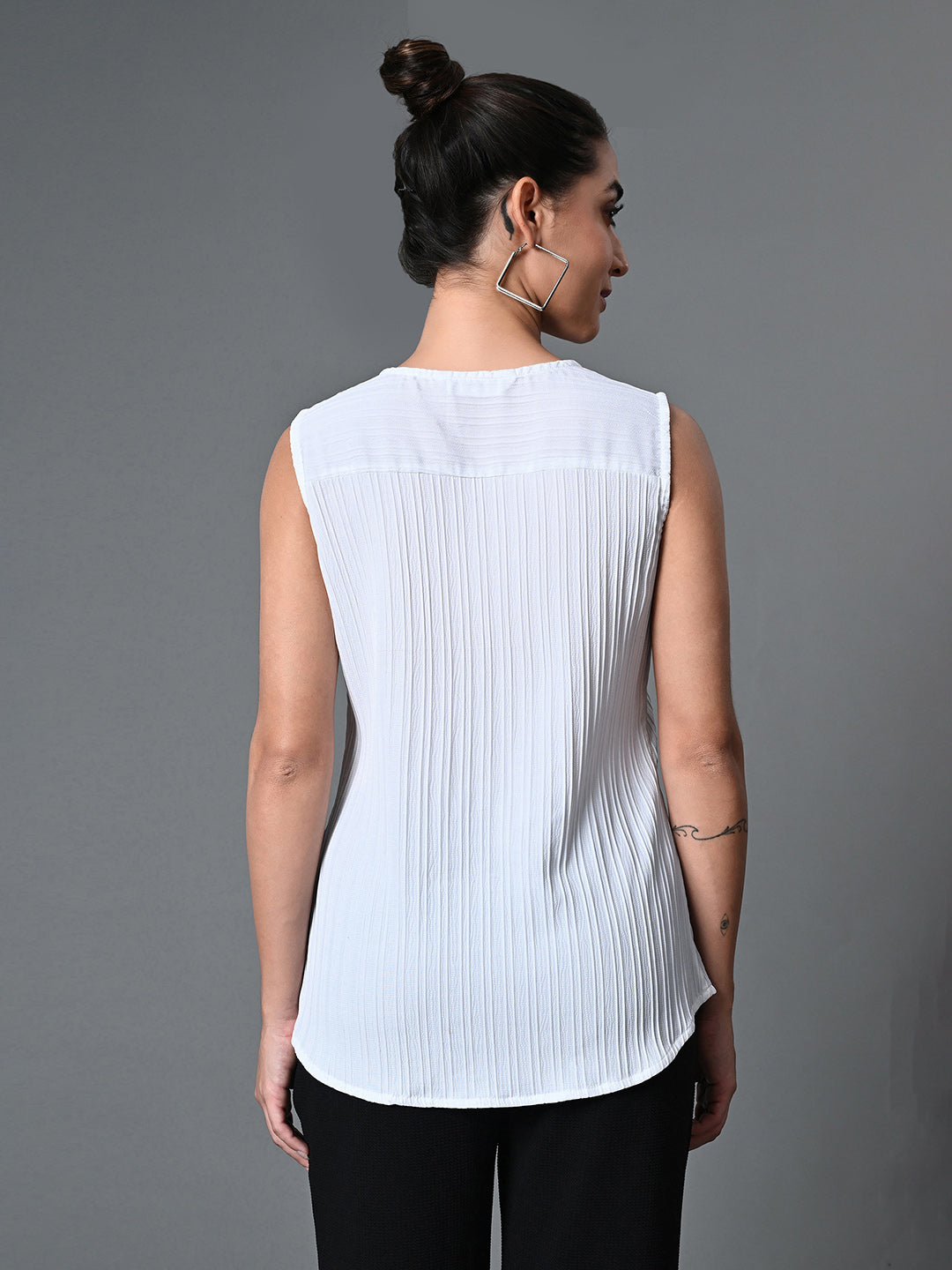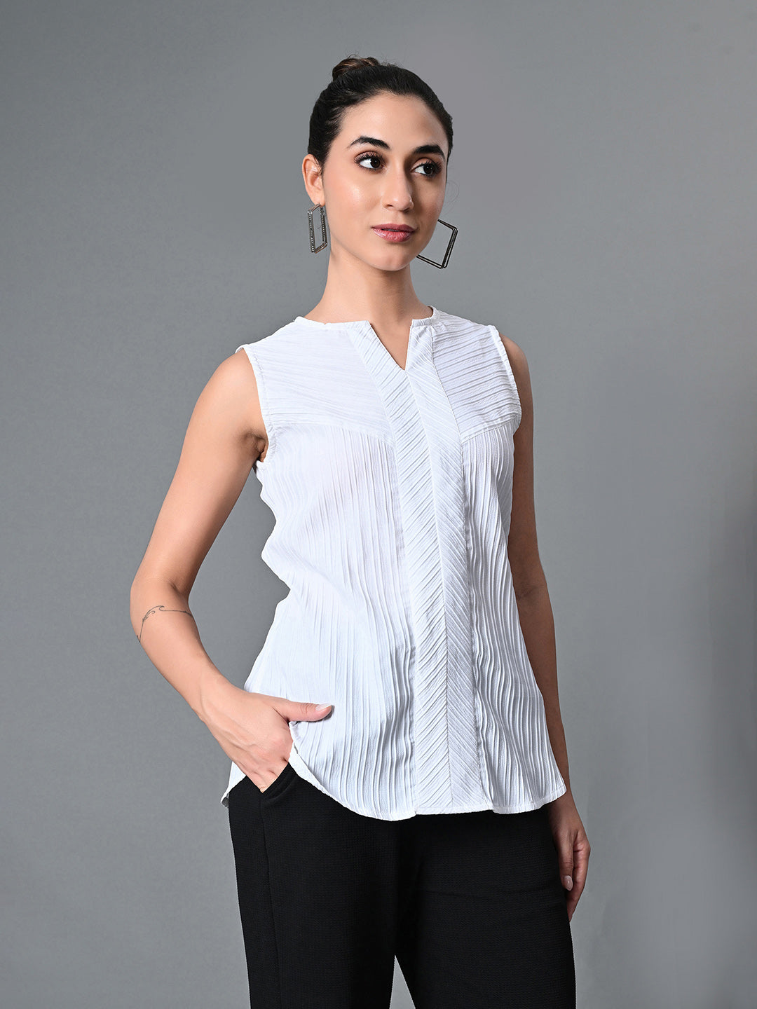 Keyhole Neck Sleeveless Casual Top In White Color