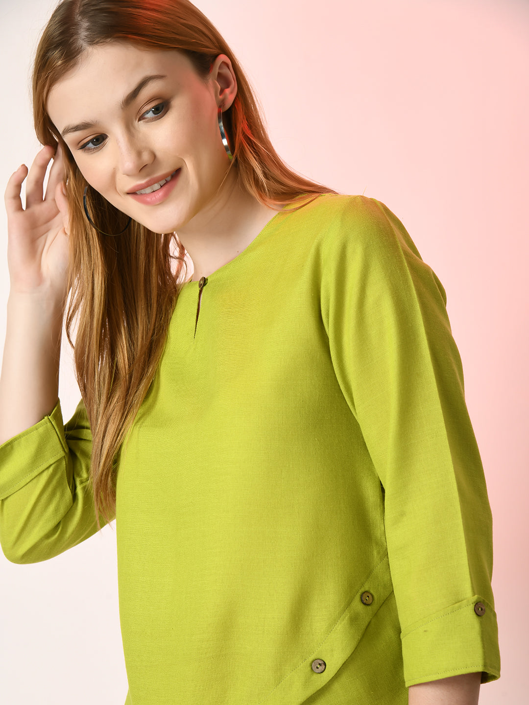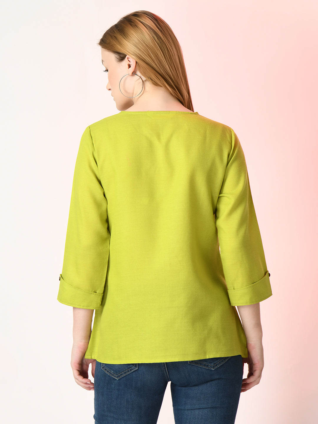 Green Solid Casual Top