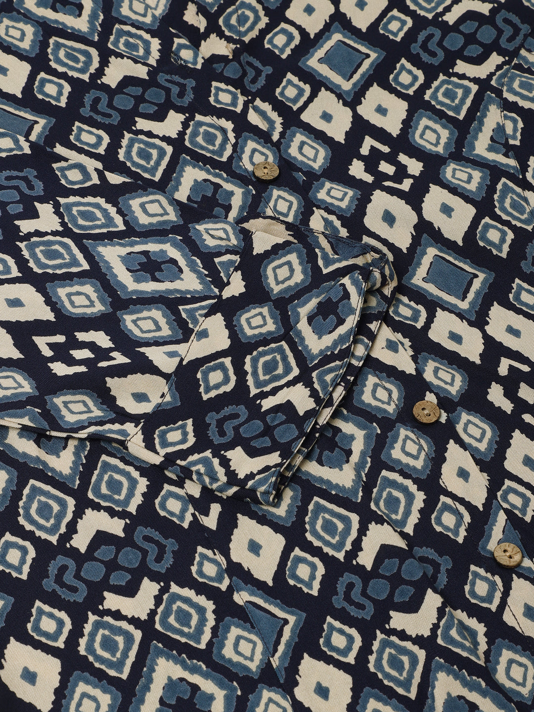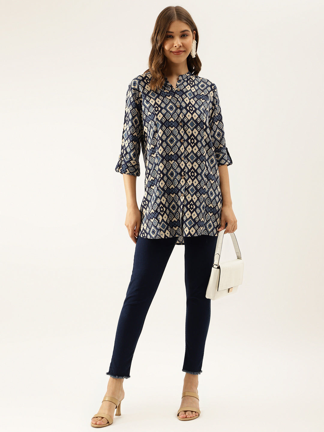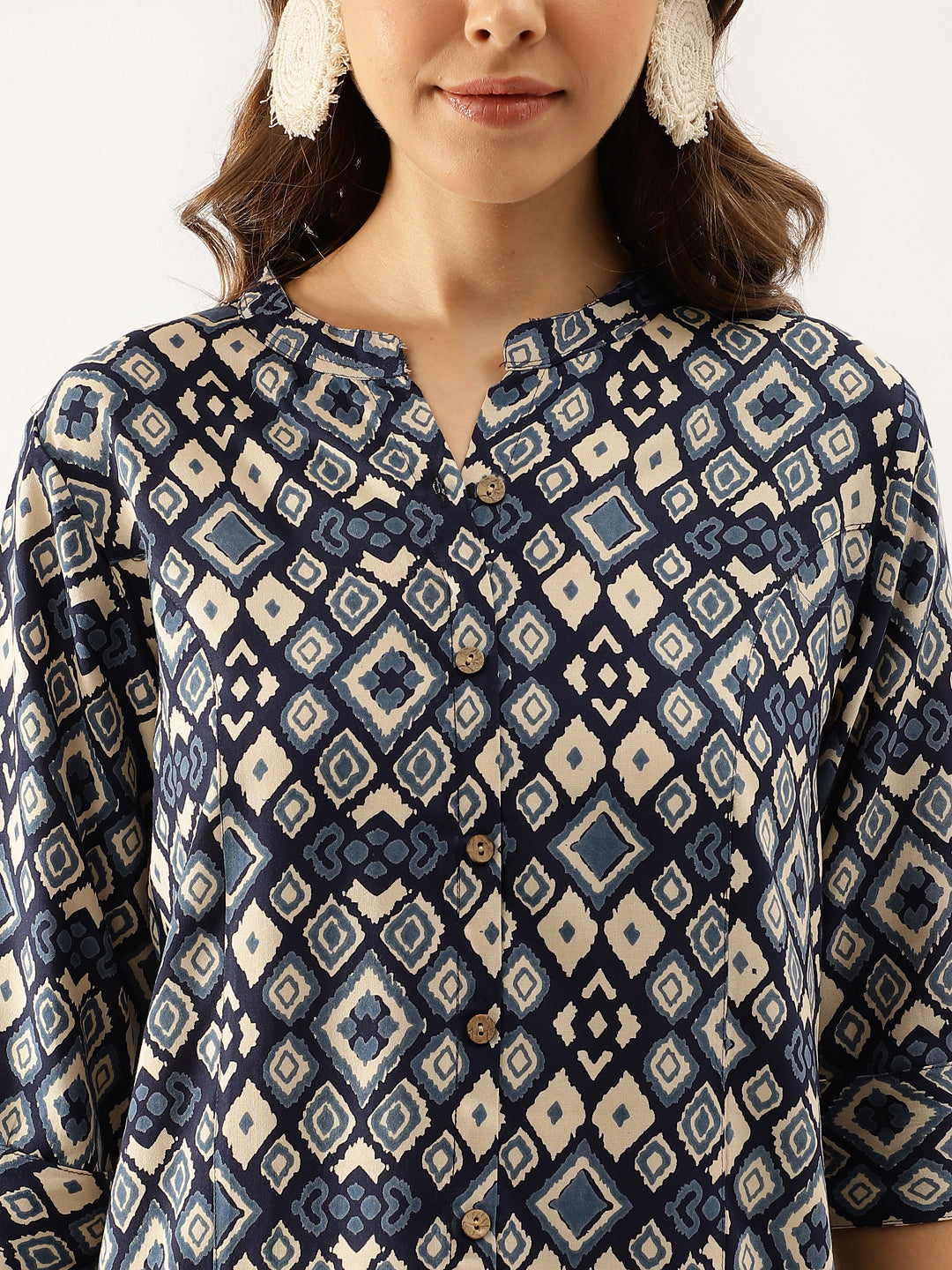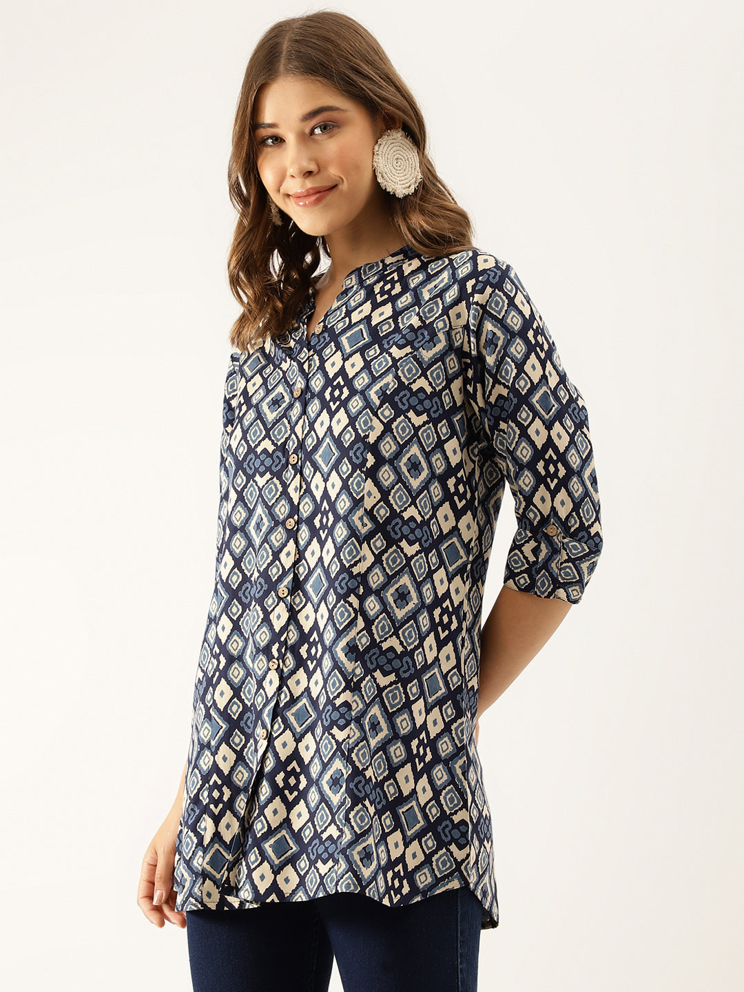 Women's Navy Blue Printed Rayon Regular Fit Top