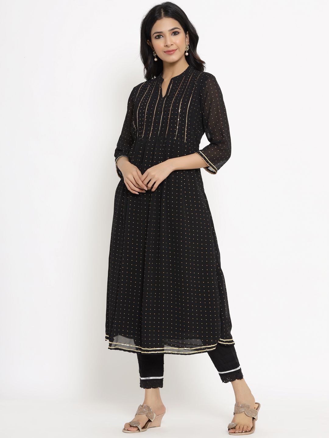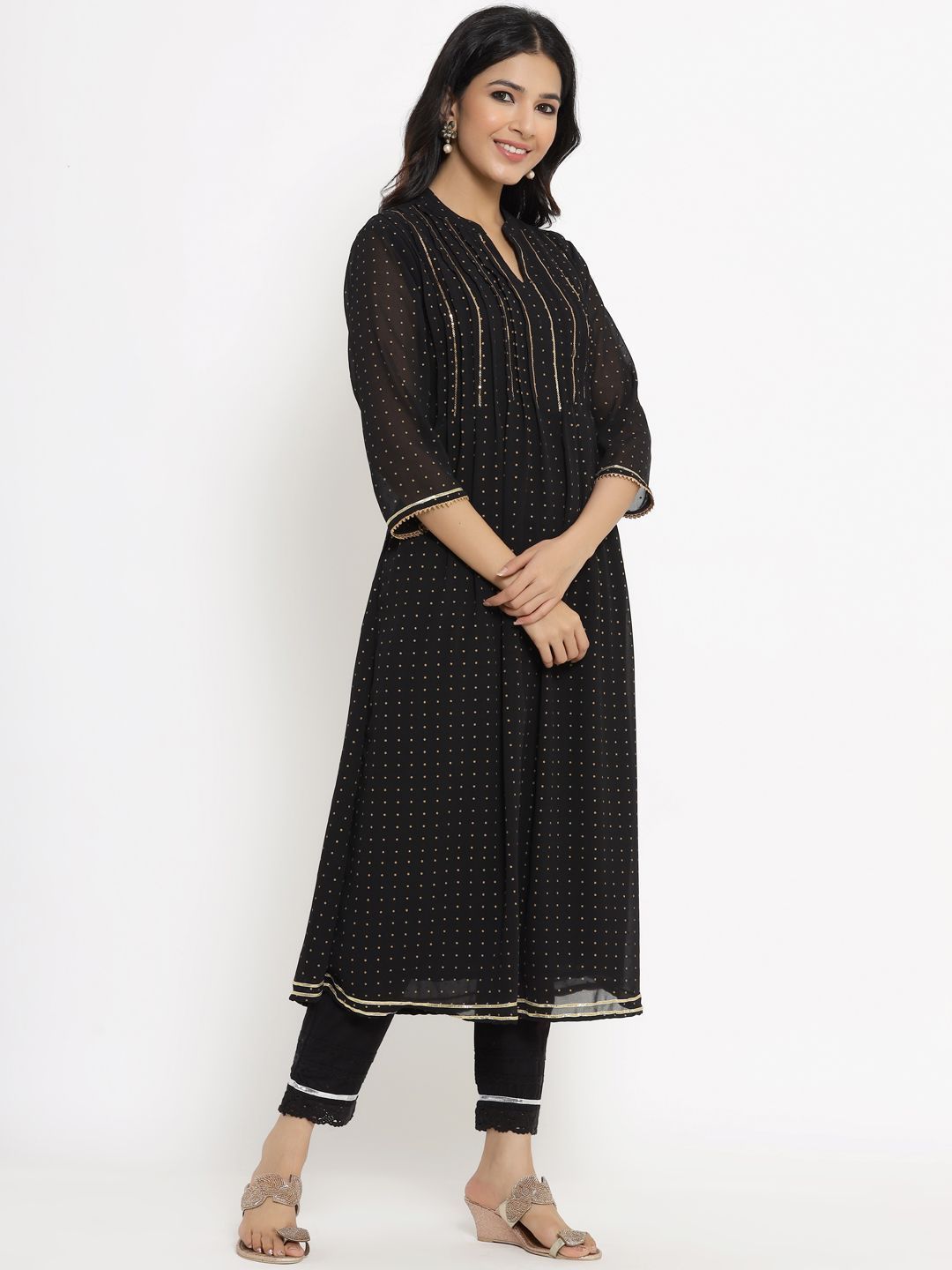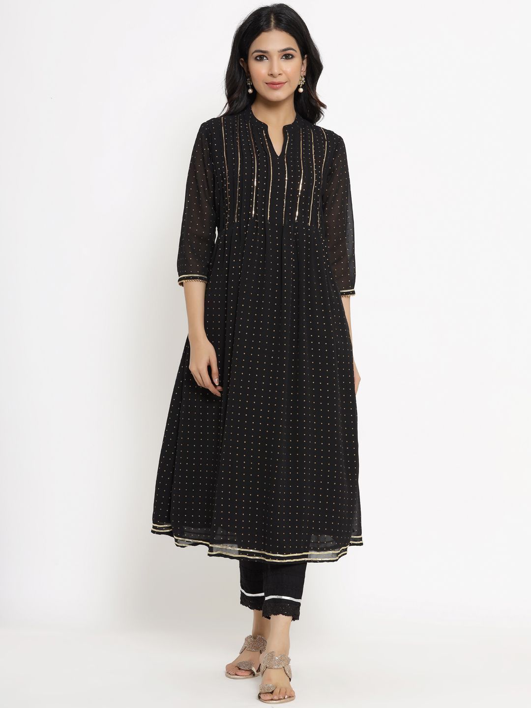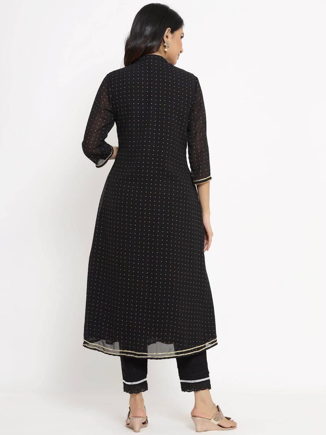 meta_tag_description :Juniper Black Georgette Polka Print A-Line Kurta with Poly crepe Lining