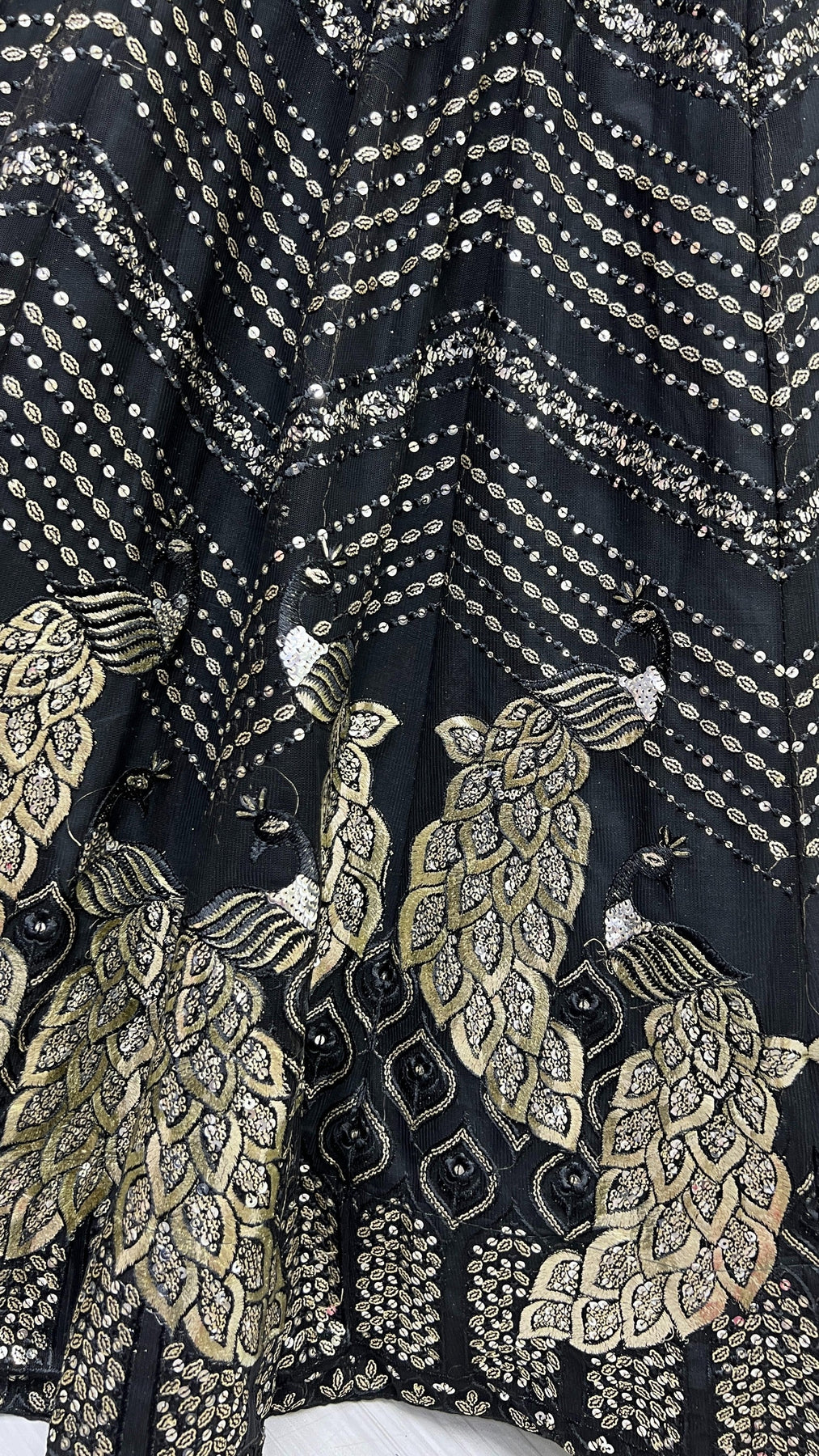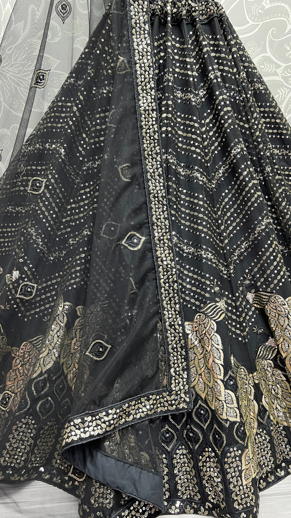 Women's Black Bridal Net Fancy Foil & Sequins With Multi Thread Embroidered Wedding Lehenga Choli