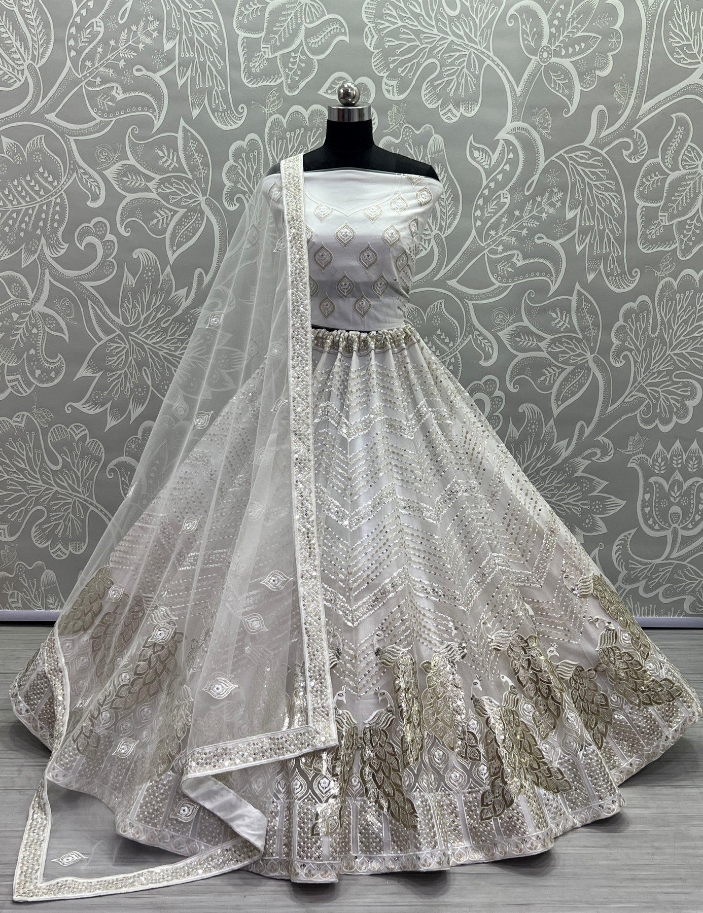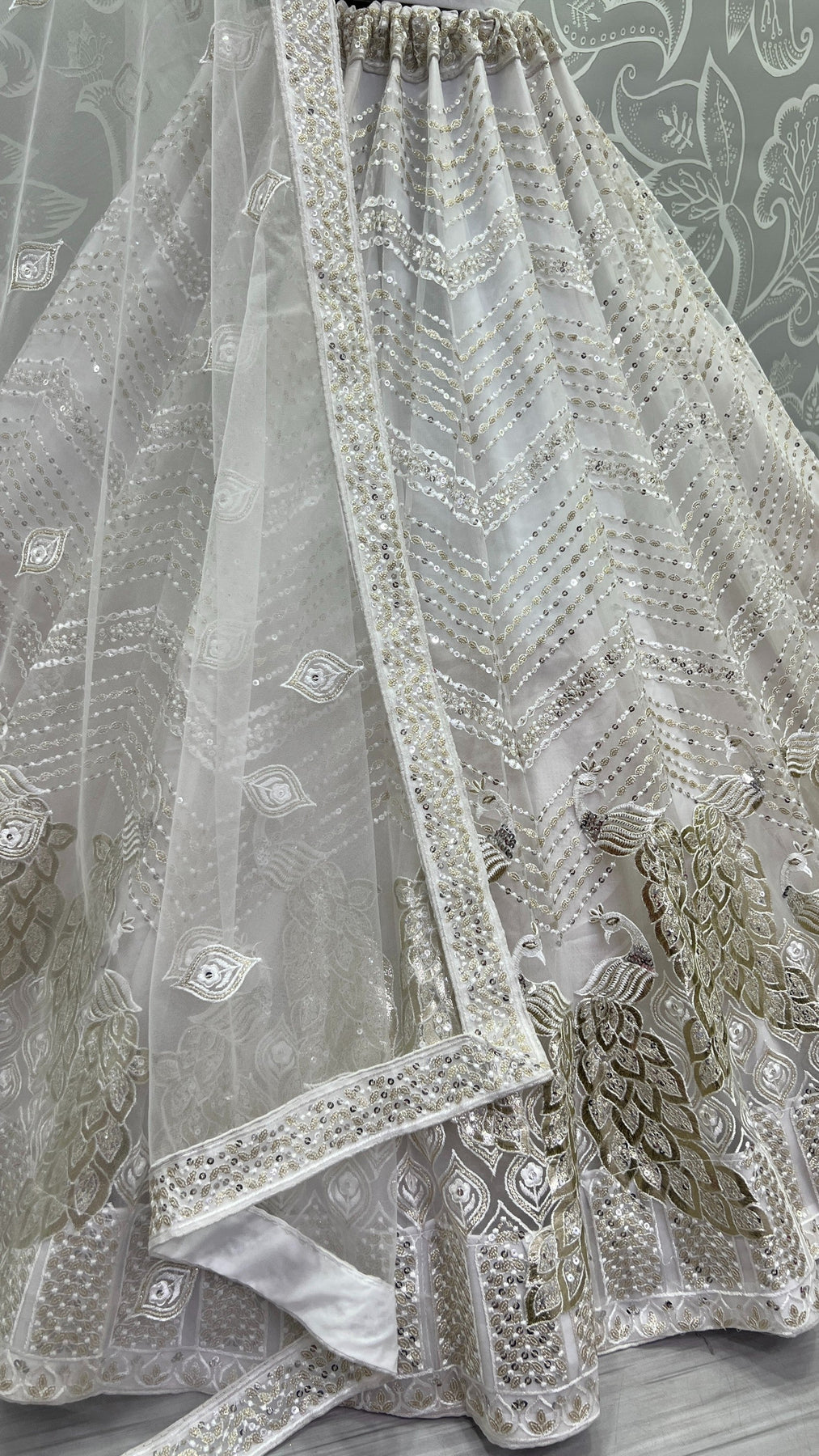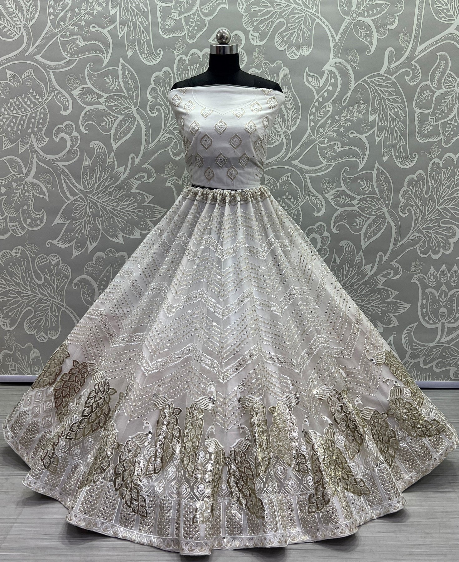 This beautiful bridal net lehenga choli is the epitome of elegance, perfect for festivals and special occasions. Get this beautiful bridal net fancy foil & sequins with multy thread embroidered lehenga choli online at trendia.co - The best online store for women's lehenga choli.
