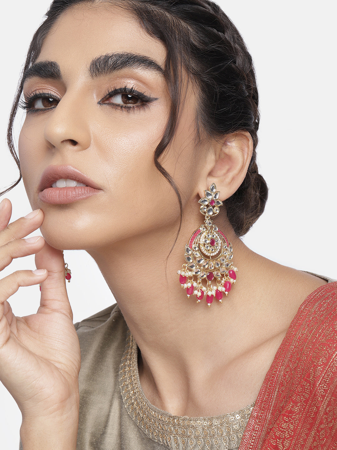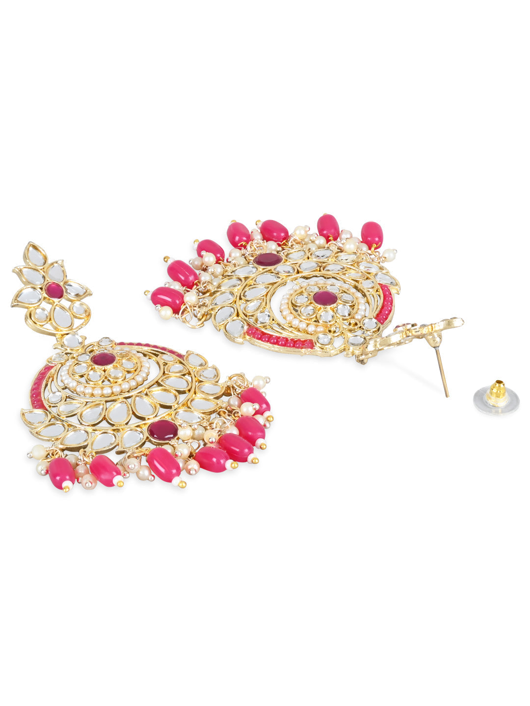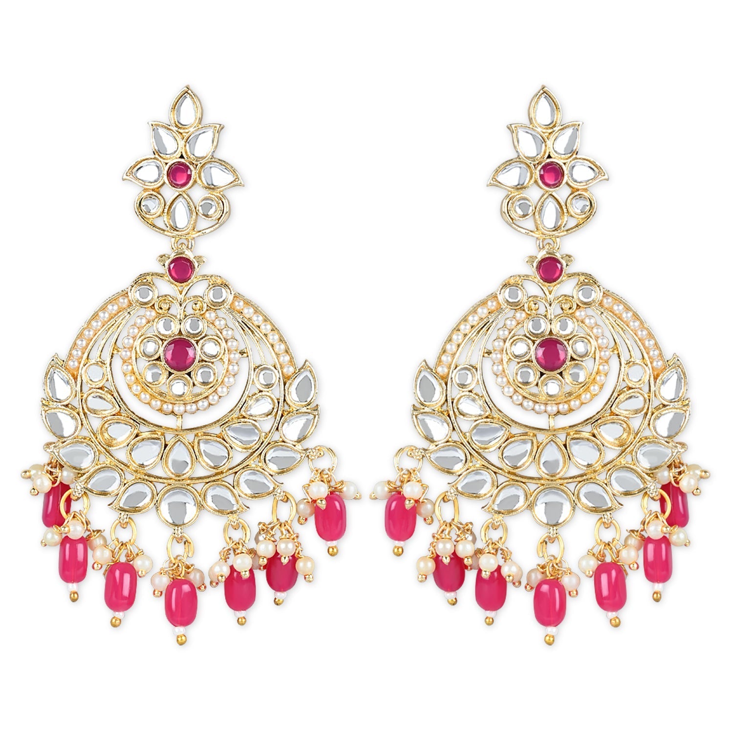 Women's 18K Gold Plated Traditional Handcrafted Pearl Kundan Beaded Earrings (E3019Q)