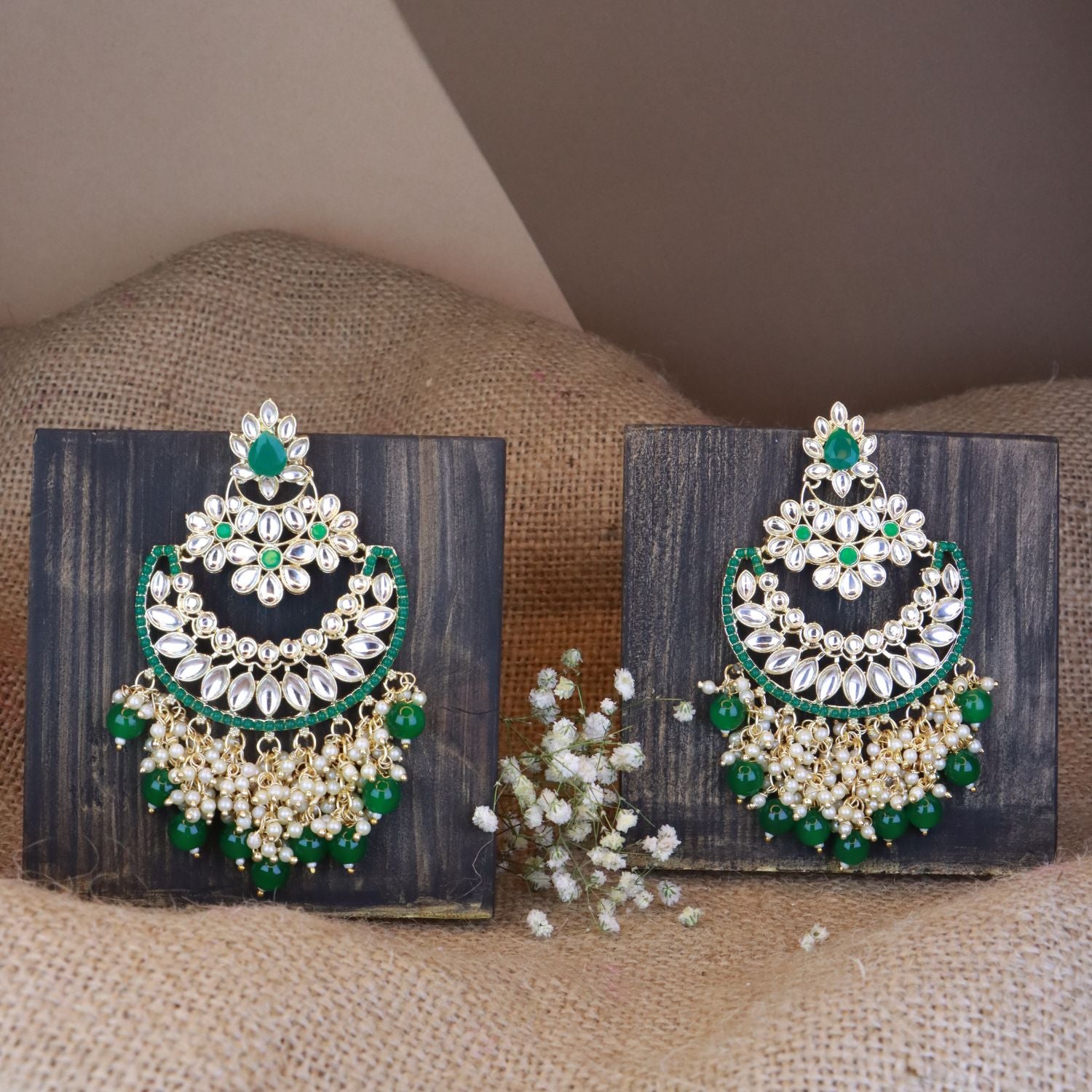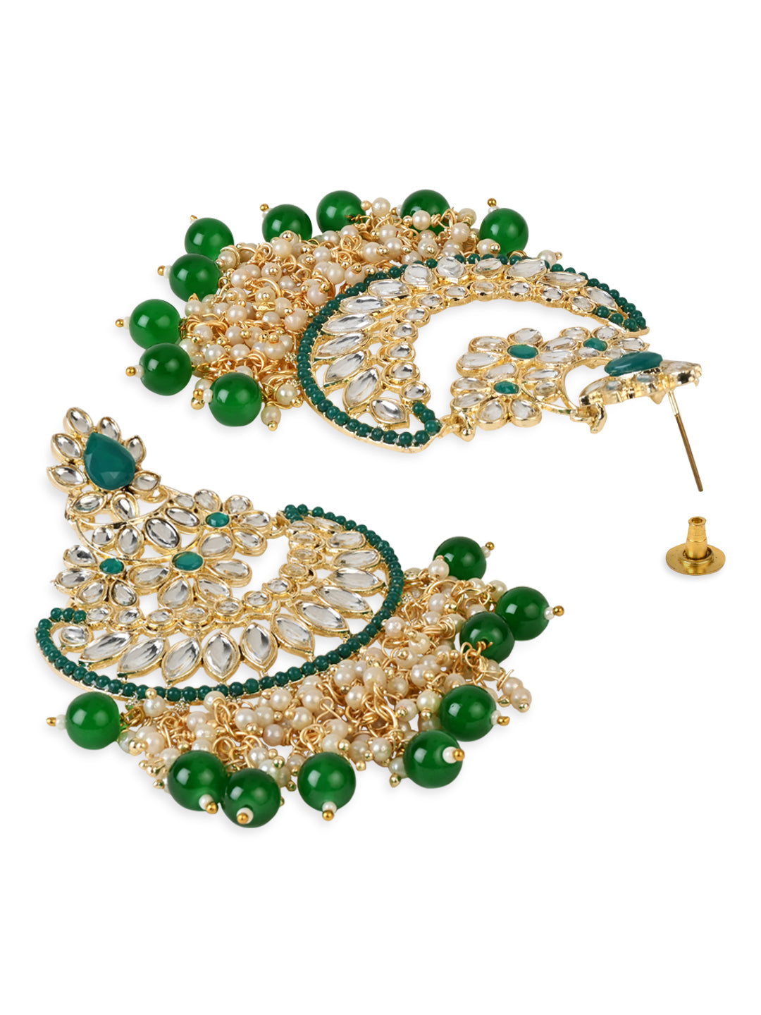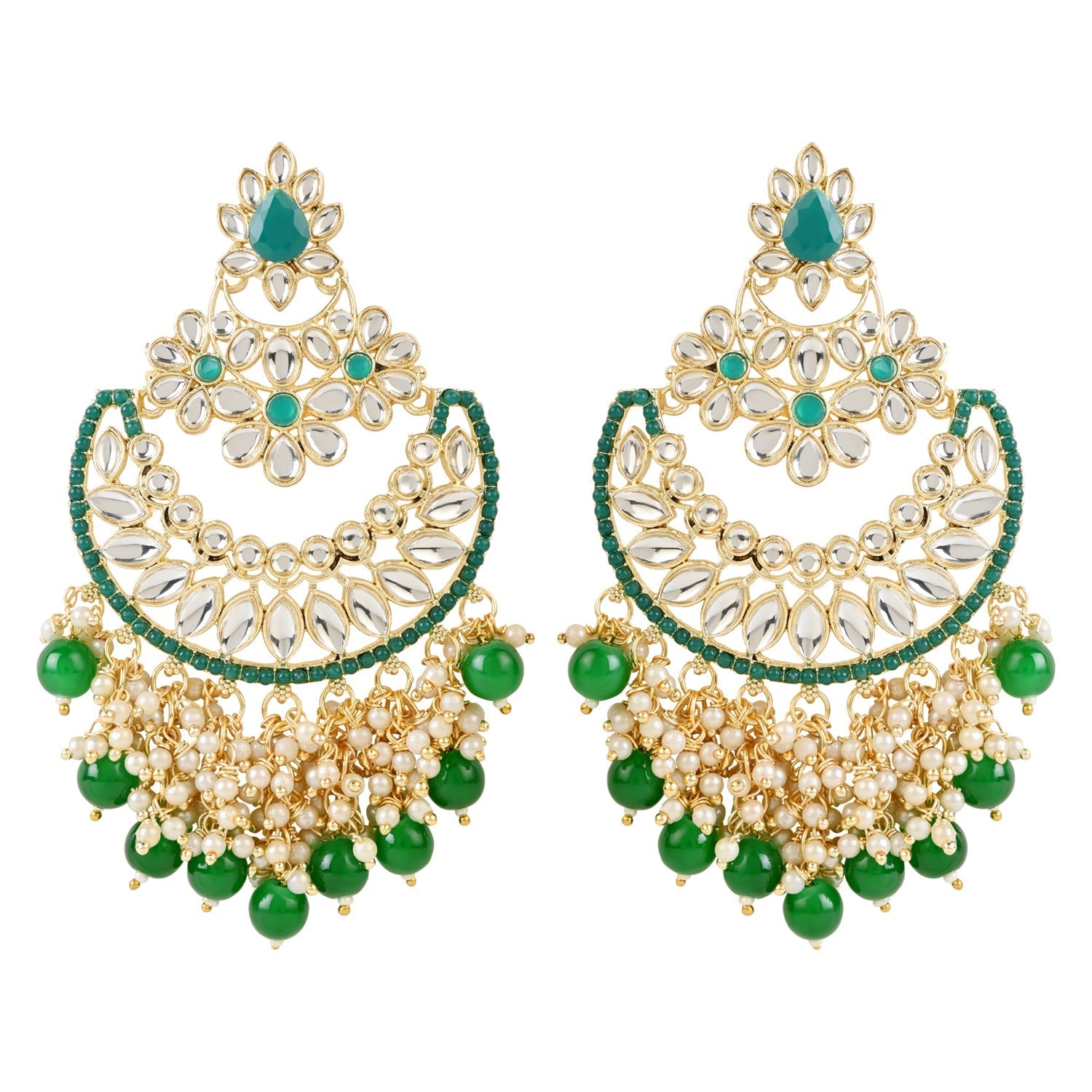 Women's 18K Gold Plated Traditional Pearl Kundan Beaded Chandbali Earrings (E3056G)