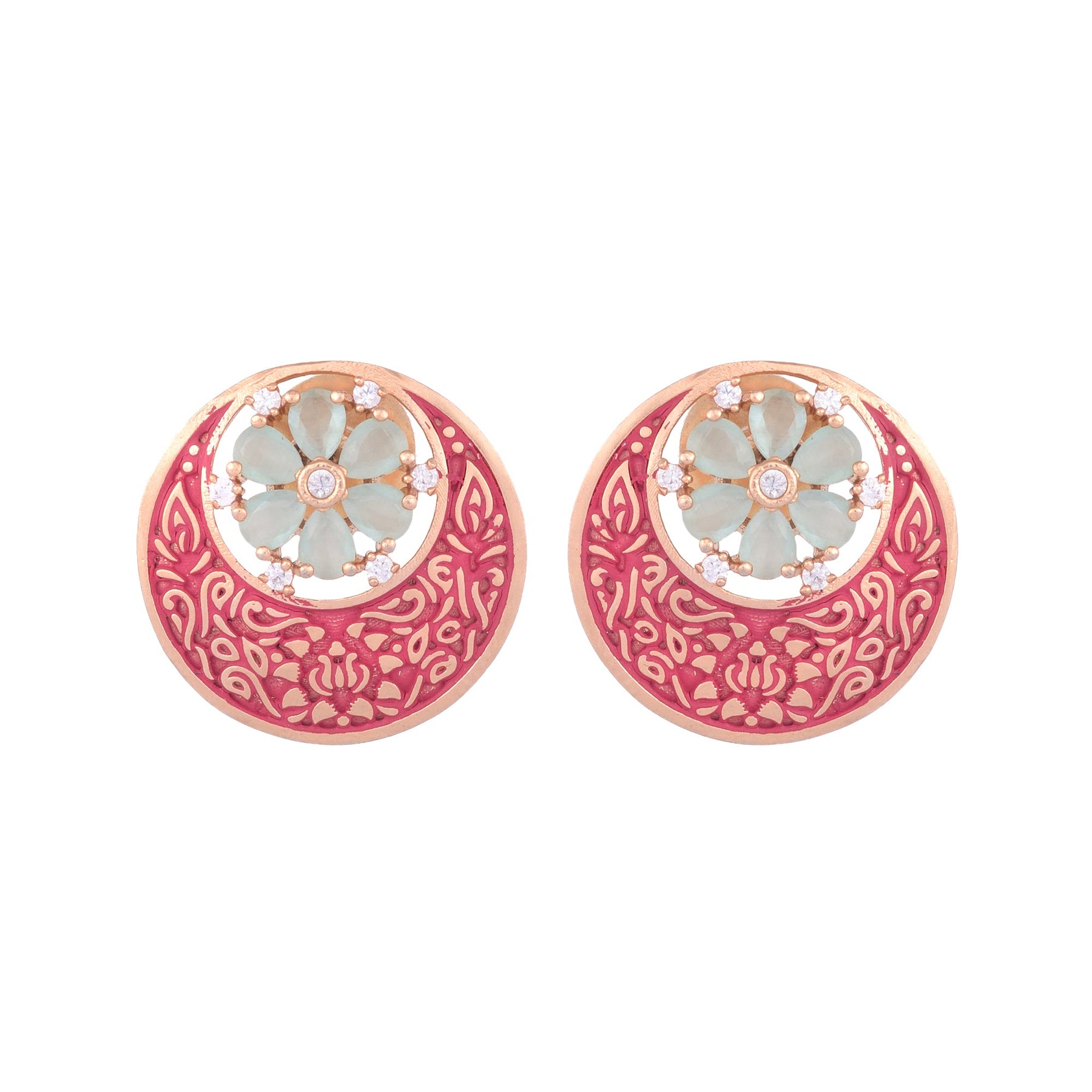 Exquisitely Designed This Contemporary Earring For Women From Saraf Rs Jewellery. You Just Can’t Prevent Yourself From Falling In Love With These Beautiful Bejeweled Danglers. These Rose Gold Earrings Are Studded With High Quality Clear Cut Cz. The Size & The Clear Cut Diamonds Made These Earrings An Absolute Show Stopper. These Earrings Will Go Seamlessly With Any Modern Look Attire. A Perfect Gift On The Occasions Like Wedding, Ring Ceremony, Engagement, Festival. It Is Advisable To Store Jewellery In A Jewellery Pouch Or In Jewellery Organizer Box. Keep Away From Chemicals, Water And Direct Sunlight. Clean It With A Dry And Soft Cloth Or Cotton.