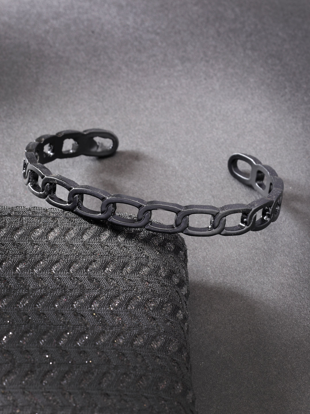 Style Note: The NVR Men Black Rhodium-Plated Metal Cuff Bracelet exudes a bold and modern aesthetic with its sleek black rhodium finish. Its minimalist design makes it versatile for various occasions, from casual outings paired with jeans and a t-shirt to adding a contemporary edge to smart-casual attire like button-down shirts and chinos. This cuff bracelet is ideal for those seeking a blend of sophistication and understated elegance, effortlessly enhancing any outfit with its durable and distinctive style.