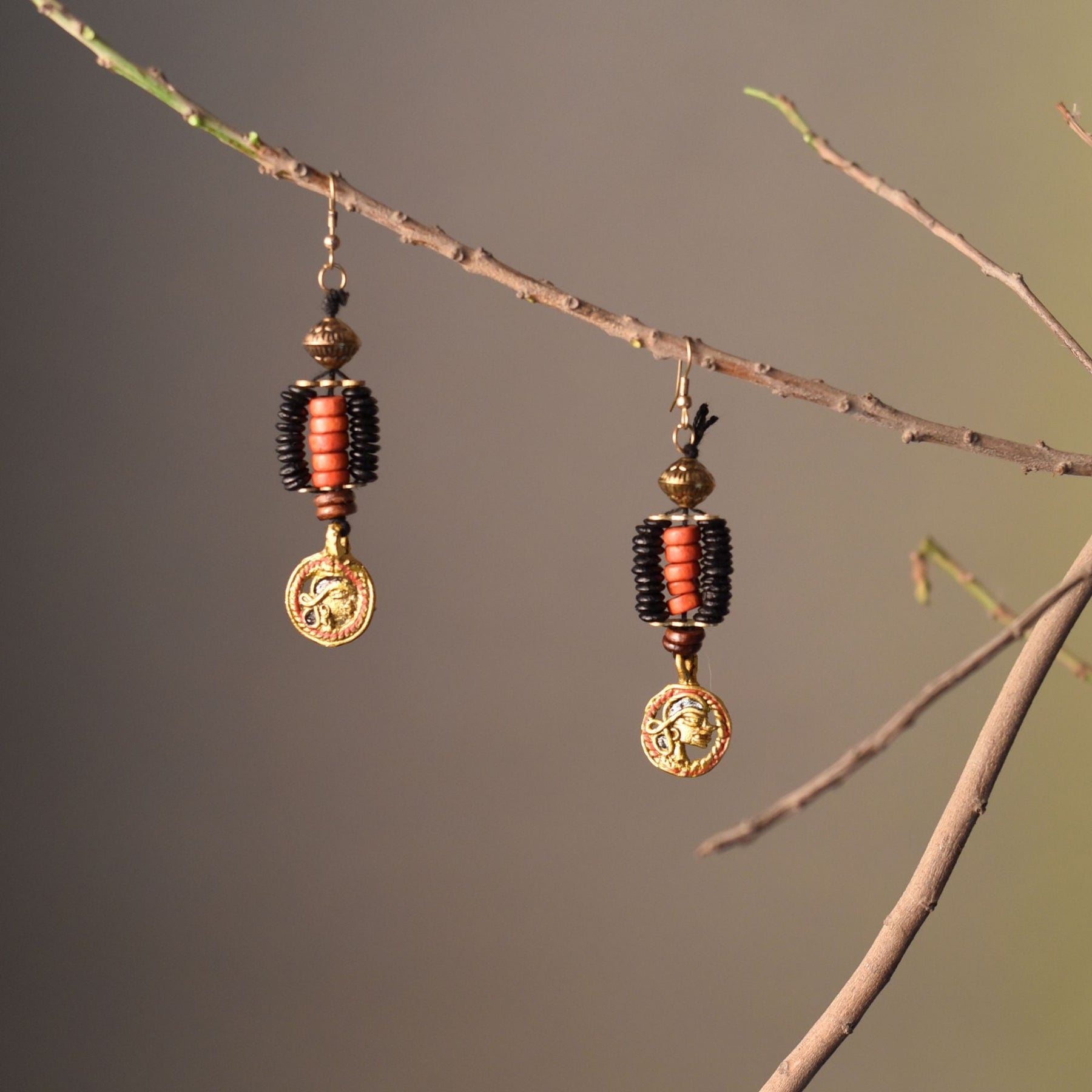 These handcrafted wooden beaded earrings with a hanging brass figure are the perfect embodiment of boho beauty. The unique design features natural wooden beads that create a rustic feel, while the intricate brass figure adds a touch of elegance and sophistication.