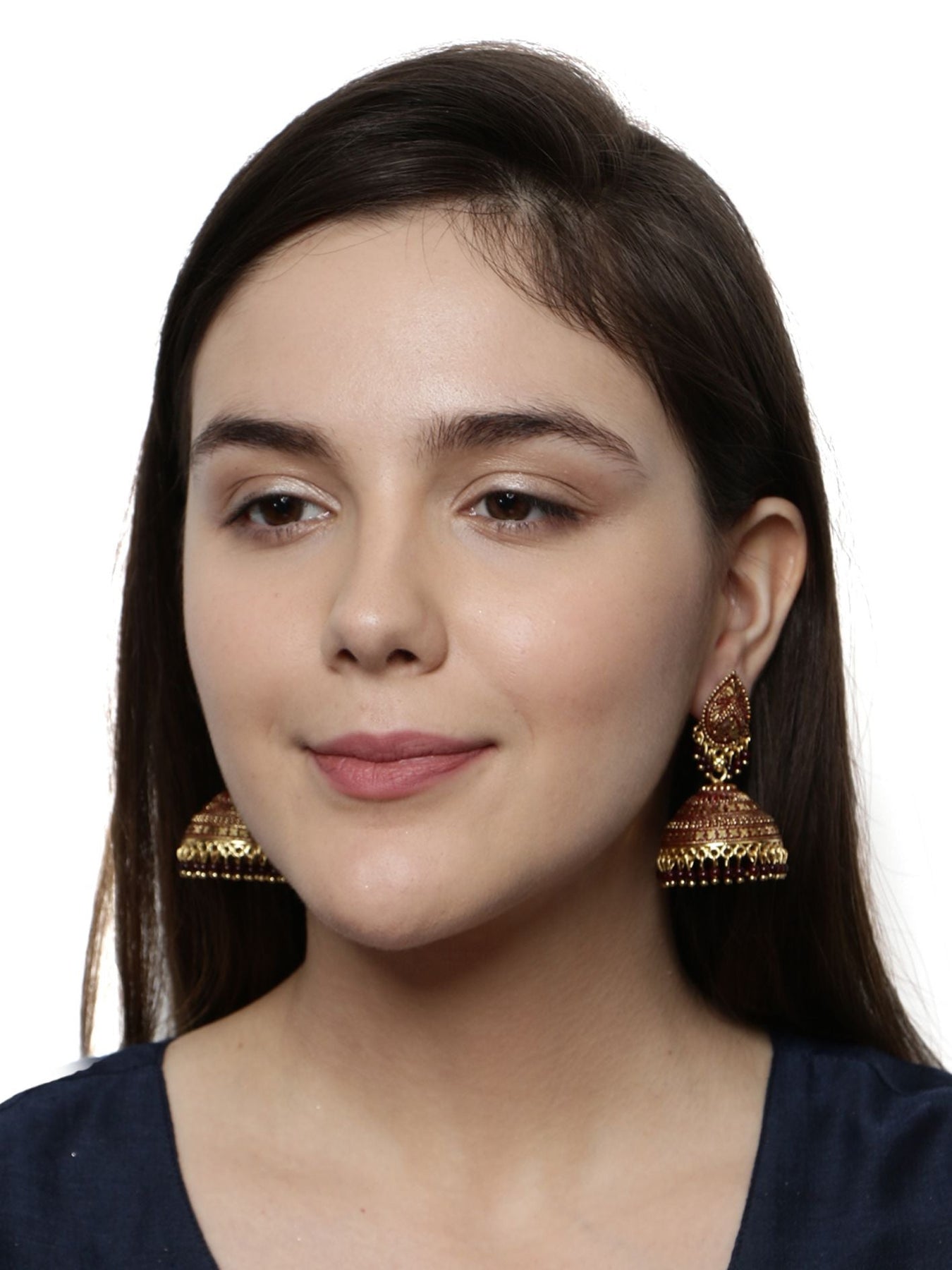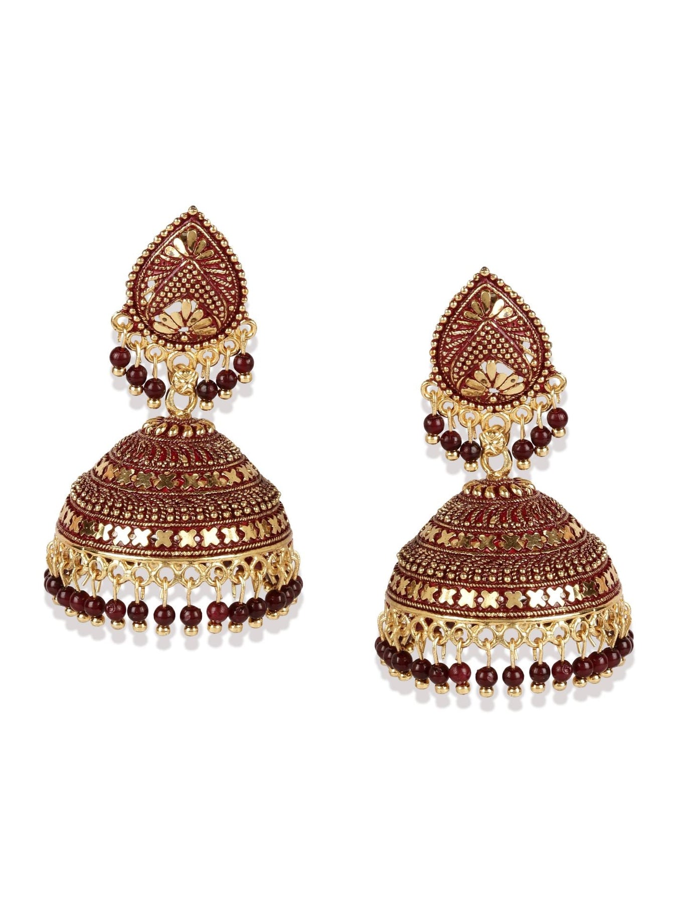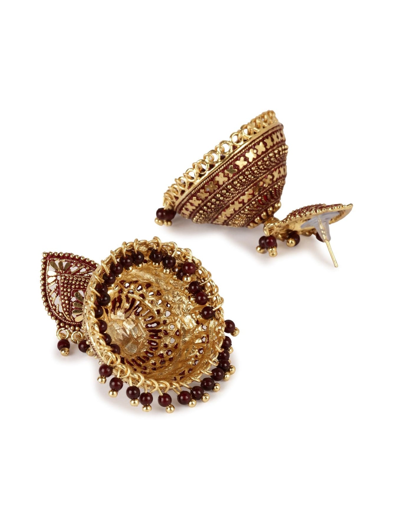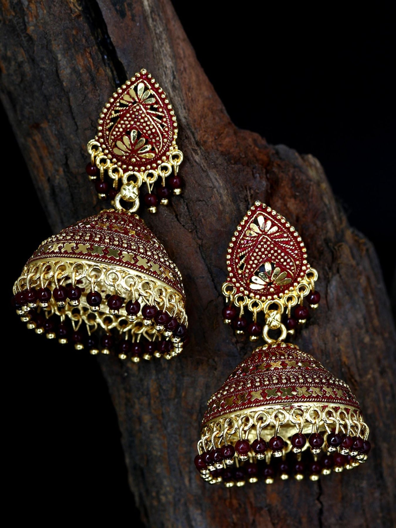 Women's Gold Plated & Maroon Enamelled Dome Shaped Jhumkas