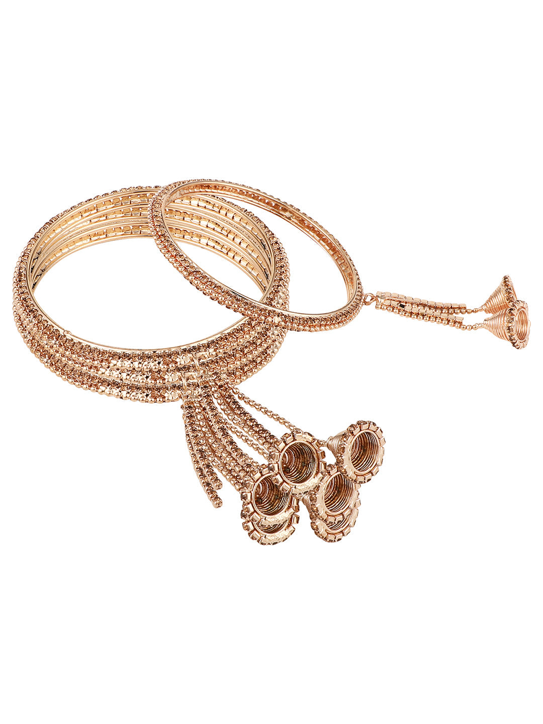 Traditional Gold Plated Pearl studded Bangle Set of 4 BanglesWomen love jewellery; specially traditional jewellery adore a women. They wear it on different occasion. They have special importance on ring ceremony, wedding and festive time. They can also wear it on regular basics. Make your moment memorable with this range. This jewel set features a unique one of a kind traditional embellish with antic finish.