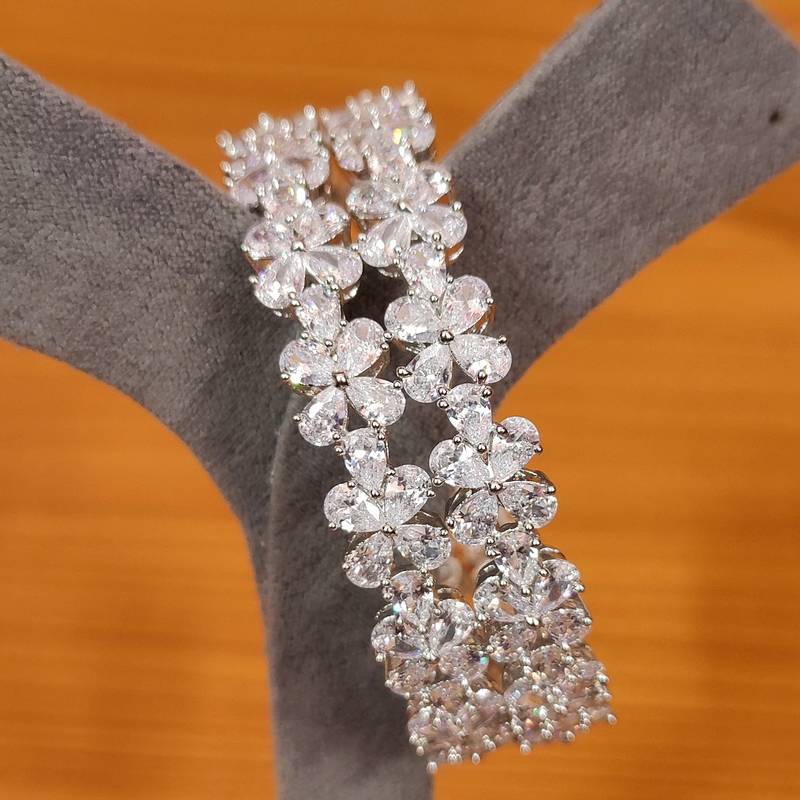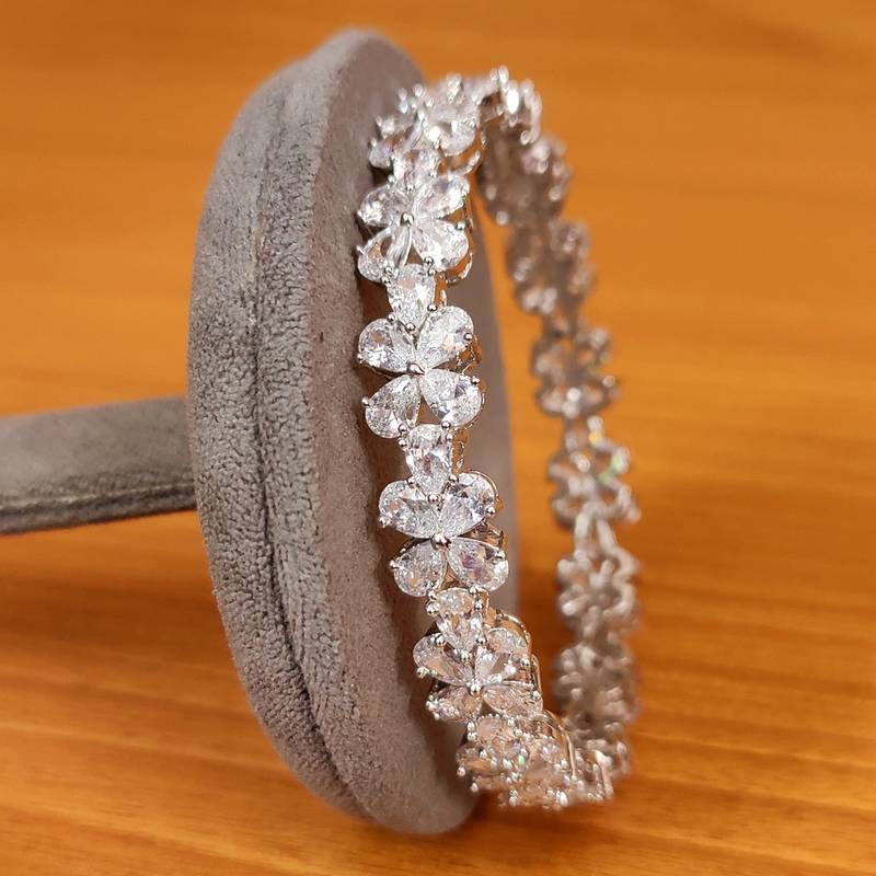 Women's Signity Cz Stones Pear Shaped Pointers Diamond Look Bangles - Sanvi Jewels