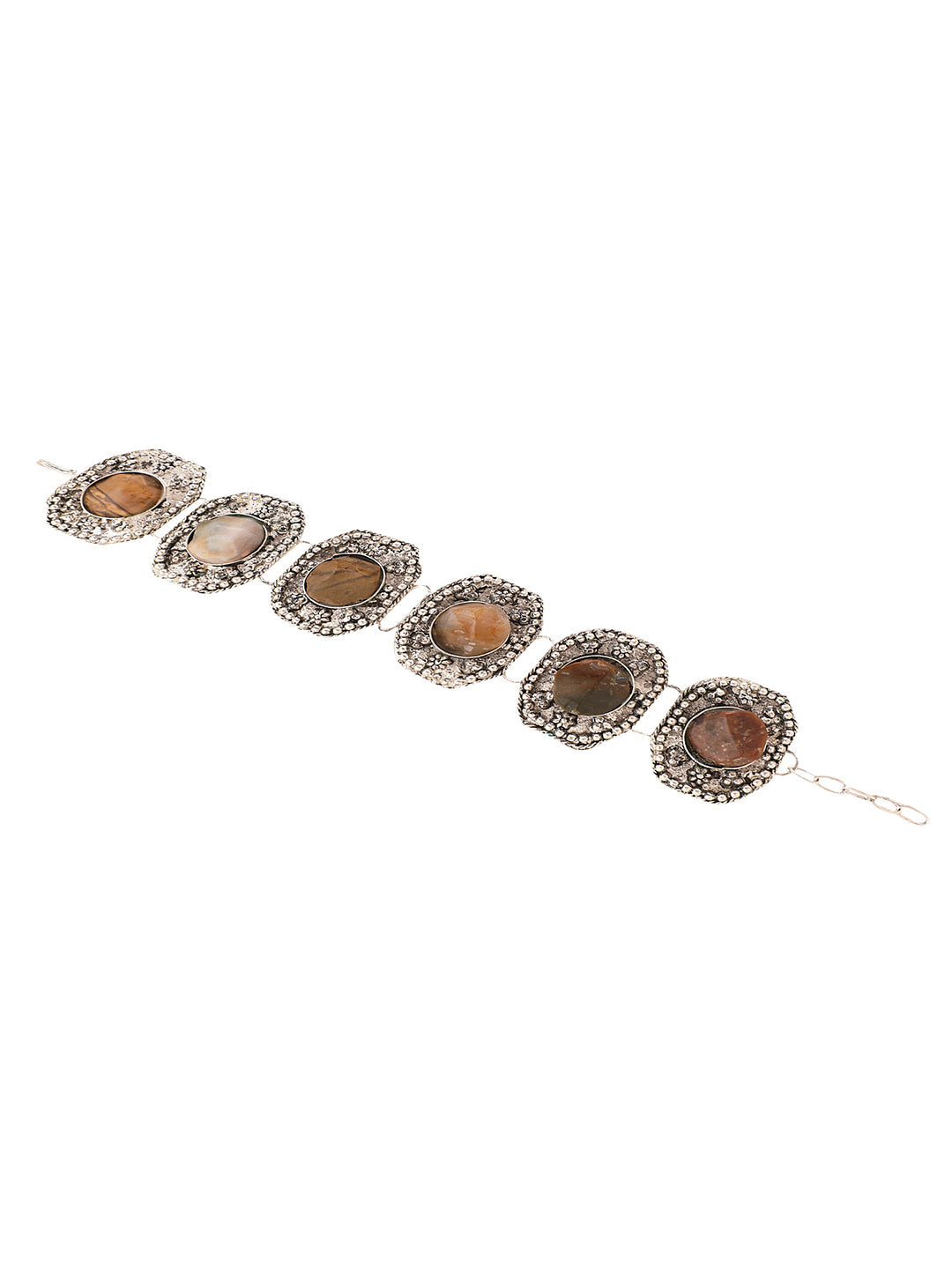 Women's Elegant German Silver Oxidised Silver Toned Stone Crafted Link Bracelet