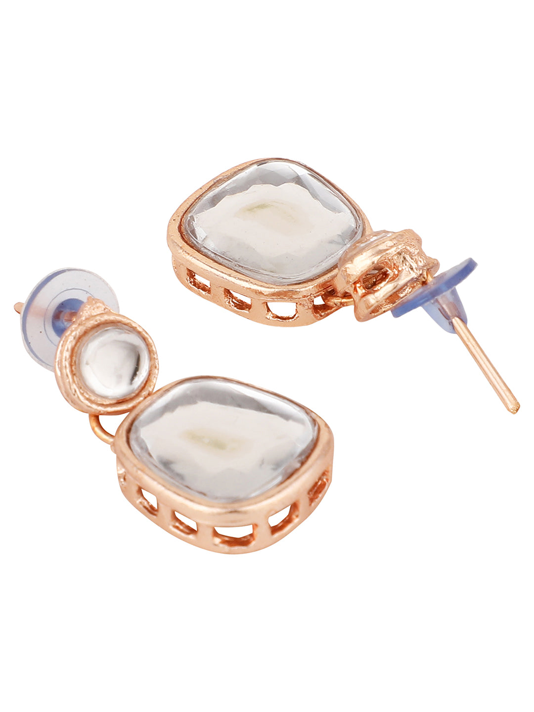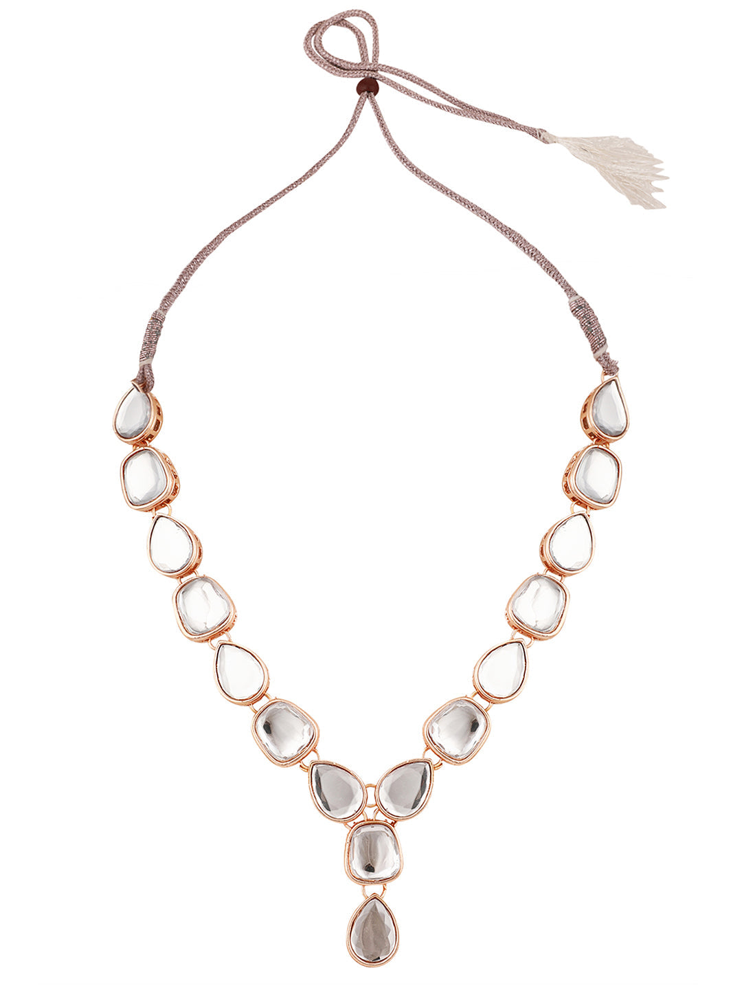 Contemporary Gold Plated Uncut Kundan Studded Necklace with Kundan Drop Earring SetWomen love jewellery; specially traditional jewellery adore a women. They wear it on different occasion. They have special importance on ring ceremony, wedding and festive time. They can also wear it on regular basics. Make your moment memorable with this range. This jewel set features a unique one of a kind traditional embellish with antic finish.