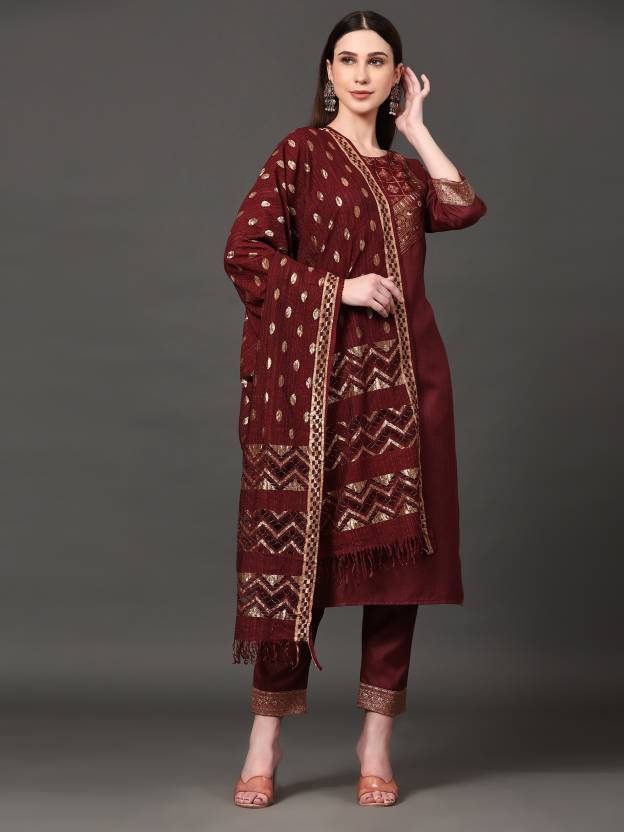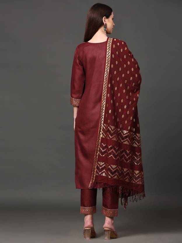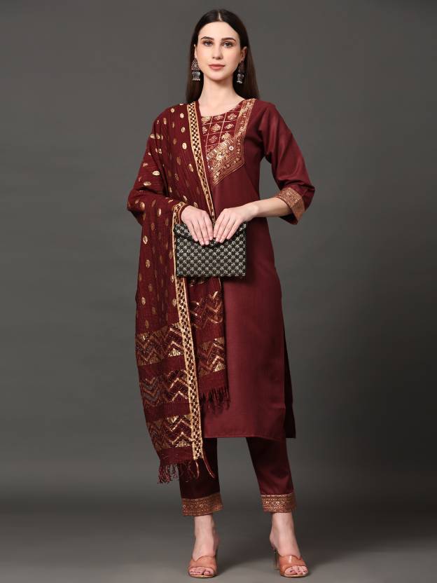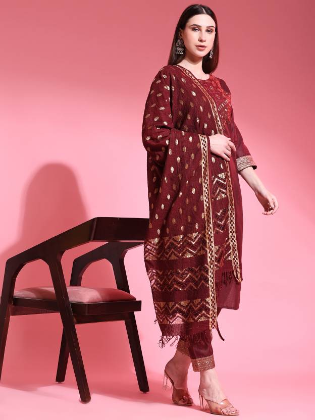 Women's Cotton Blend Kurta, Pant And Dupatta Set