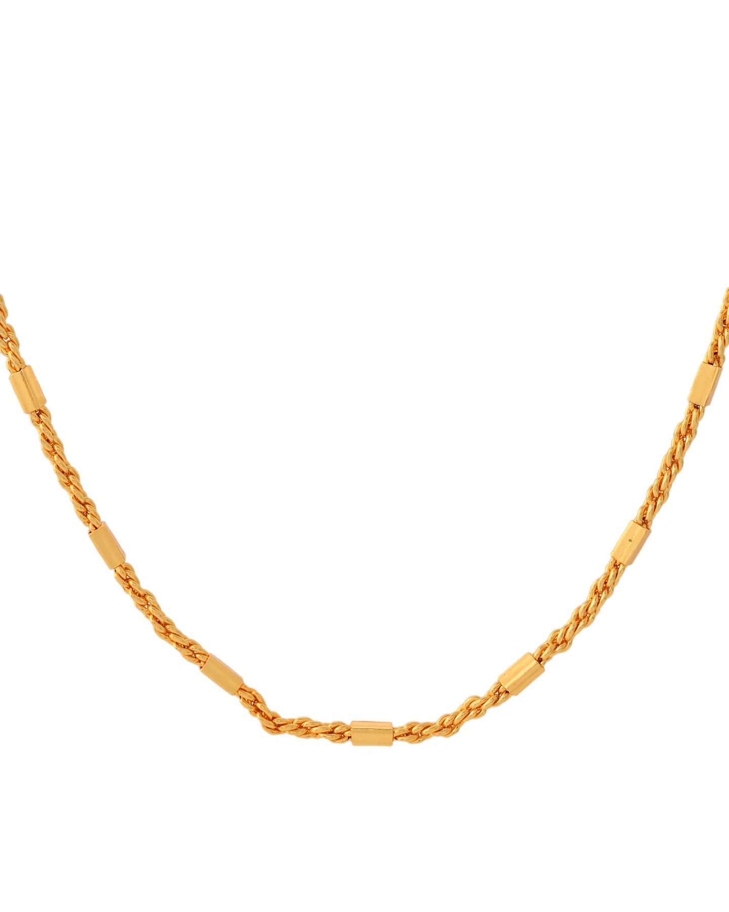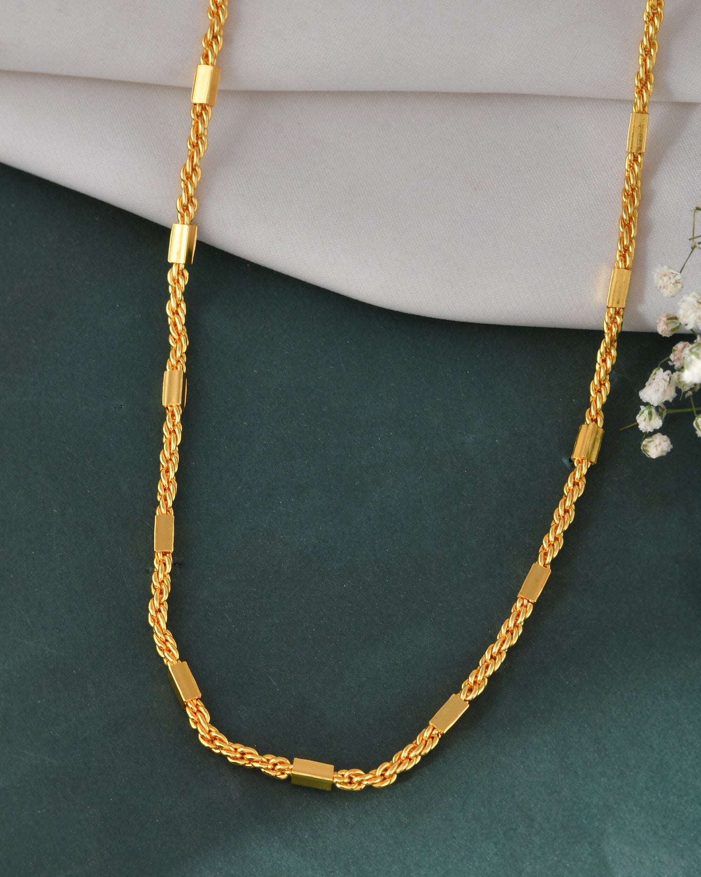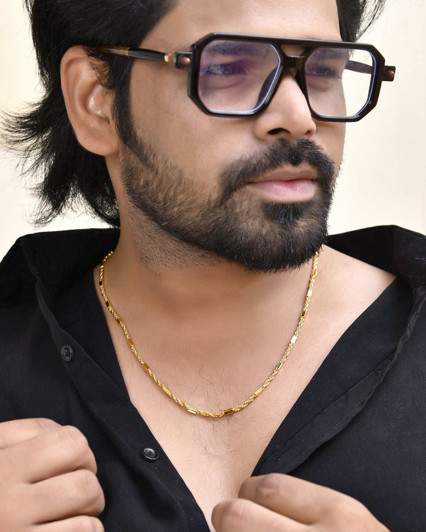 Make A Statement With The Men’S Gold-Plated Rascha Pipe Chain — A Fusion Of Modern Structure And Timeless Charm. This Chain Showcases A Unique Cylindrical Pipe Design, Creating A Sleek, Edgy, And Bold Look. Crafted From High-Grade Brass With A Luxurious Gold Plating, It’S Built To Last — Resistant To Tarnish And Fading. Lightweight Yet Sturdy, This Piece Elevates Casual Fits, Ethnic Wear, Or Party Ensembles Effortlessly. The Smooth, Polished Finish Ensures Maximum Comfort While Keeping Your Style Game On Point. Whether You'Re Out On The Town Or Dressing For A Special Event, This Chain Speaks Confidence And Modern Elegance.