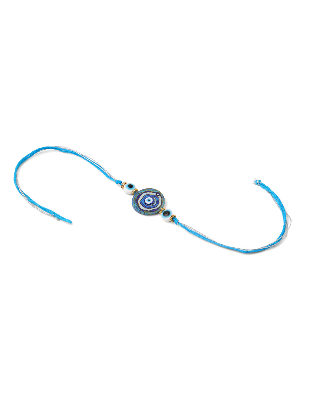 Style Note: Celebrate Raksha Bandhan With Love, Protection, And Style With The Nvr Blue Evil Eye Artificial Beads Set Of 2 Bhaiya Bhabhi Rakhi. Featuring The Powerful Evil Eye Symbol, These Rakhis Are Designed To Protect Your Loved Ones From Negative Energies While Adding A Touch Of Modern Elegance To The Occasion. The Blue Artificial Beads Enhance The Festive Appeal, Giving Each Rakhi A Vibrant And Eye-Catching Look. The Set Includes One Rakhi For Bhaiya And One For Bhabhi, Making It The Perfect Way To Honor The Bond Between Siblings And Their Spouses. Paired With Roli, Chawal, Chandan & Mishri, This Set Ensures A Traditional Raksha Bandhan Celebration Filled With Love, Blessings, And Protection. Thoughtfully Designed And Full Of Meaning, This Set Is The Perfect Gift To Express Your Heartfelt Wishes For Your Brother And Sister-In-Law.