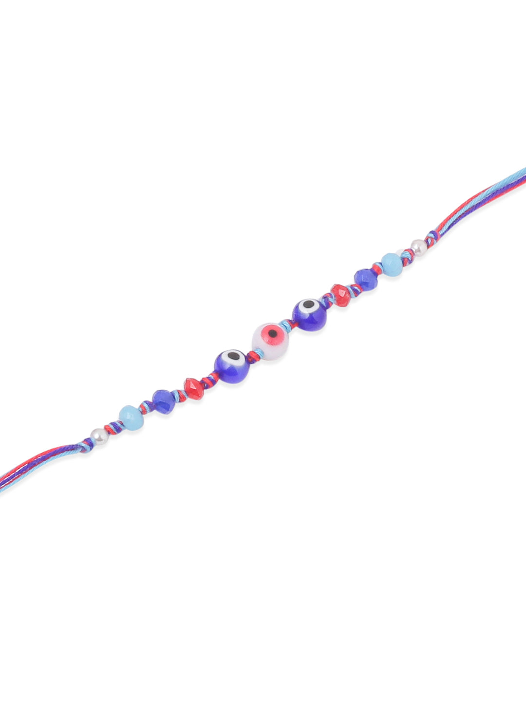 Style Note: Protect And Celebrate With The Nvr Men Multicolor Evil Eye Artificial Beads Thread Rakhi, Designed To Ward Off Negativity. Featuring Vibrant Multicolor Beads And A Symbolic Evil Eye, This Rakhi Is Both Stylish And Meaningful. Comes Complete With Roli, Chawal, Chandan & Mishri For The Traditional Raksha Bandhan Ritual. A Thoughtful And Unique Gift For Your Brother'S Well-Being.