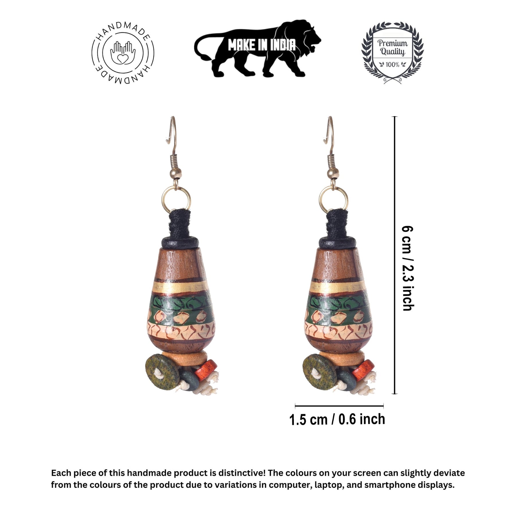 "Serene Sunrise Earrings" herald the beginning of a new day with their warm tones and peaceful aura, featuring wooden and glass beads adorned with handpainted motifs inspired by the beauty of a sunrise sky.