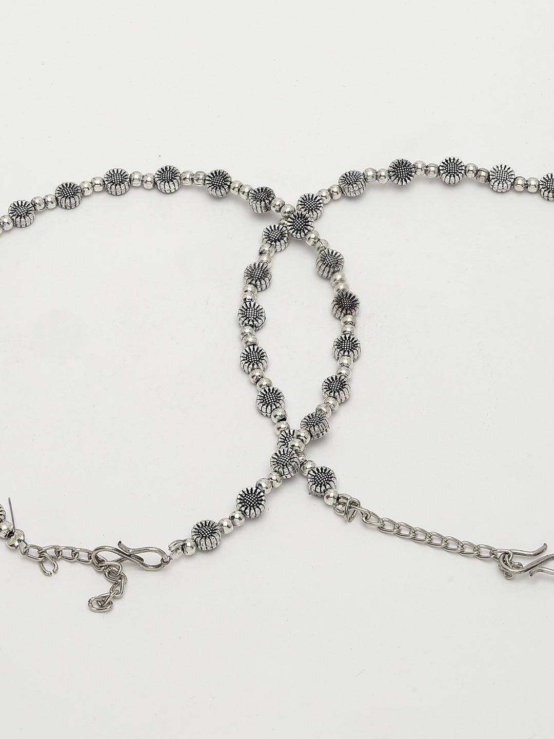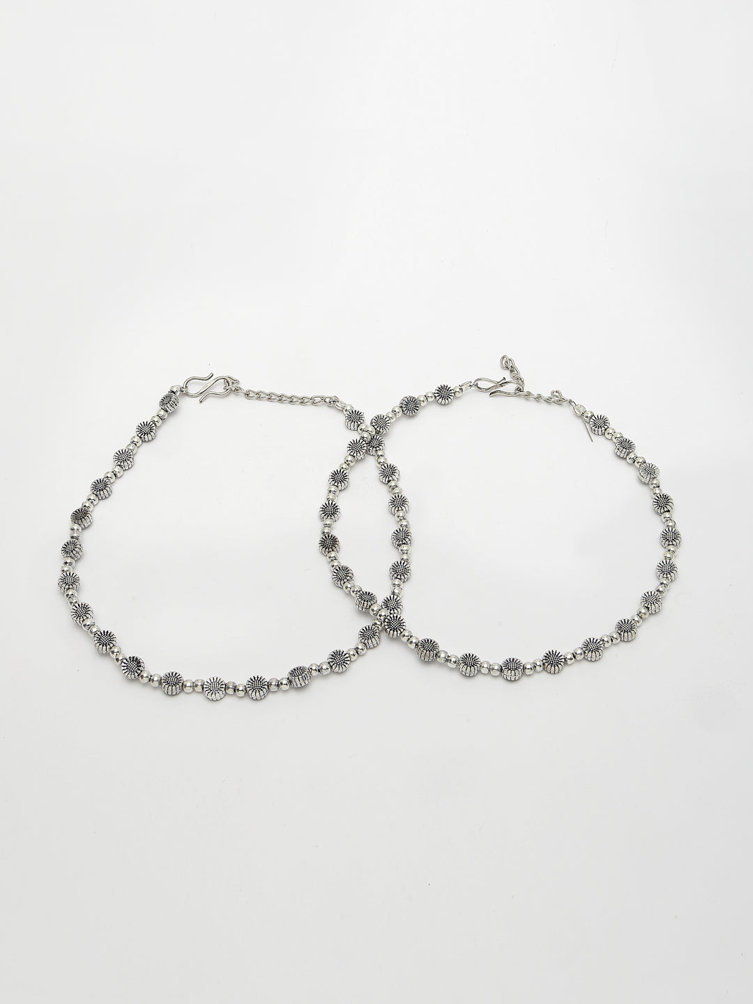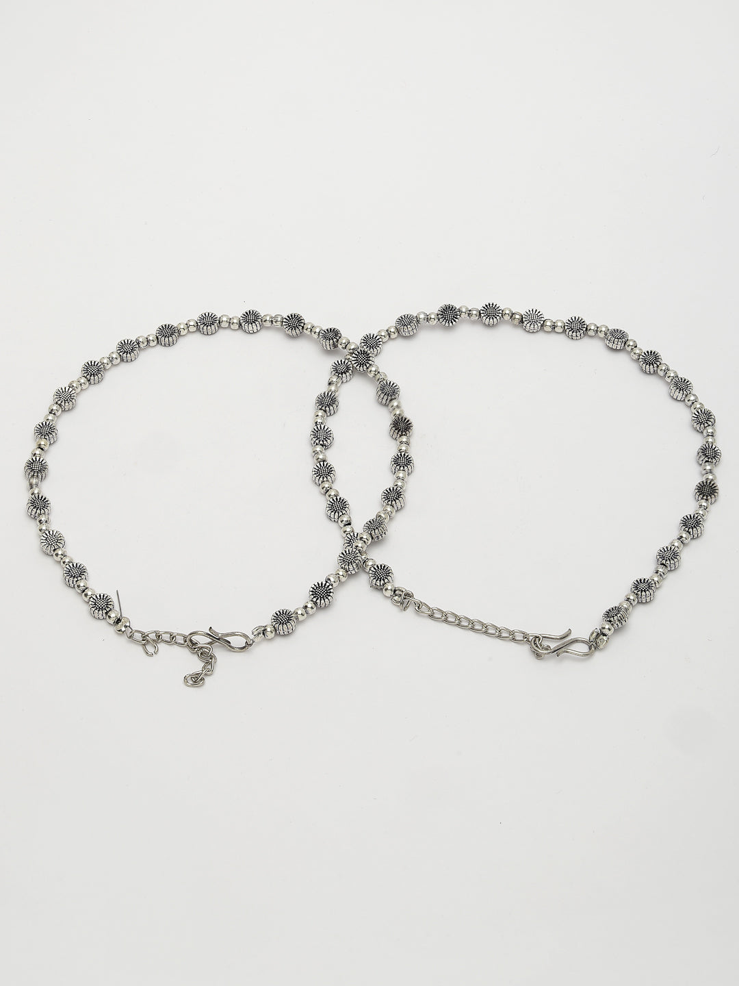 Style Note: The NVR Women Set of 2 Silver-Plated German Silver Anklets offers a blend of sophistication and durability. Crafted from German silver with a silver-plated finish, each anklet is designed to be stylish and long-lasting. These anklets are perfect for both casual wear and special occasions, adding a touch of elegance to your ensemble. With their adjustable length, they ensure a comfortable fit for various ankle sizes. Embrace their timeless appeal and versatility, making them a versatile addition to your jewelry collection.