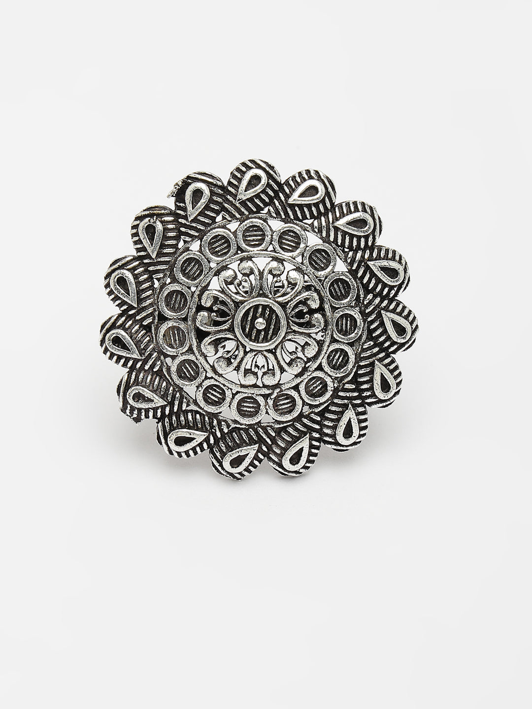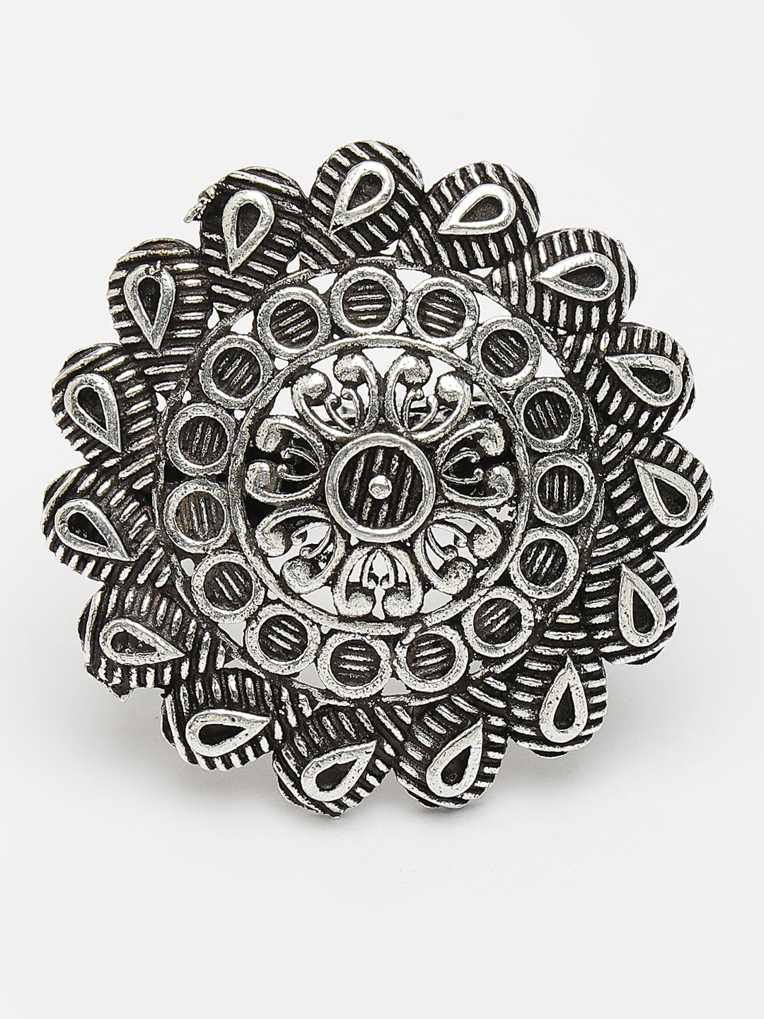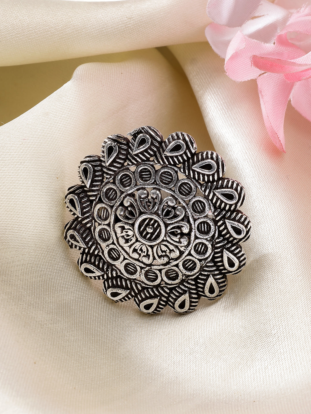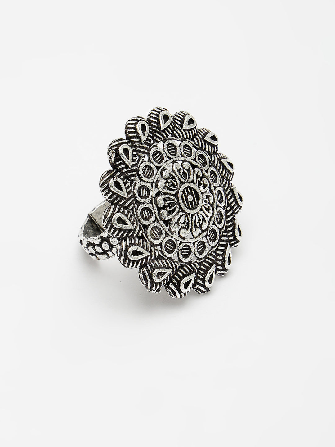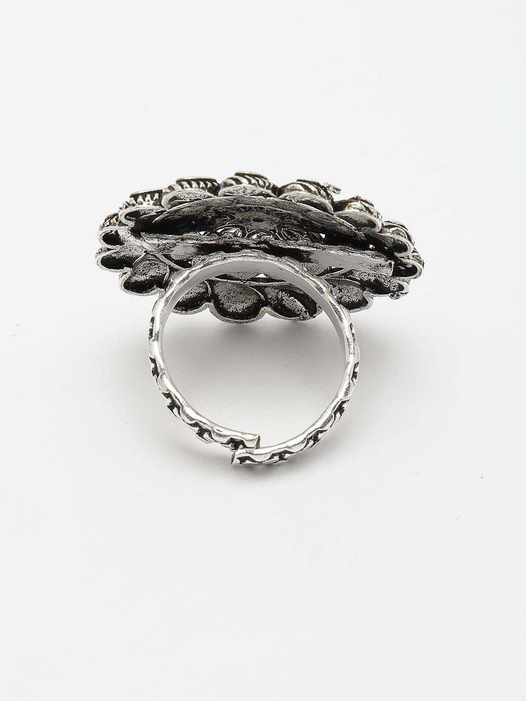 Women's Silver-Toned Floral Shape Adjustable Finger Ring