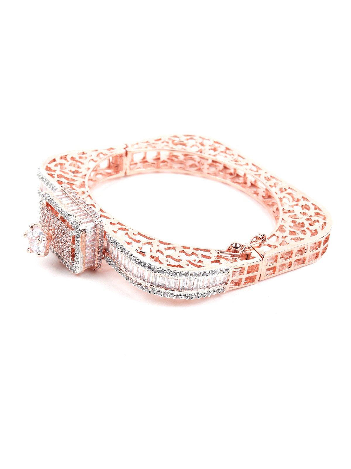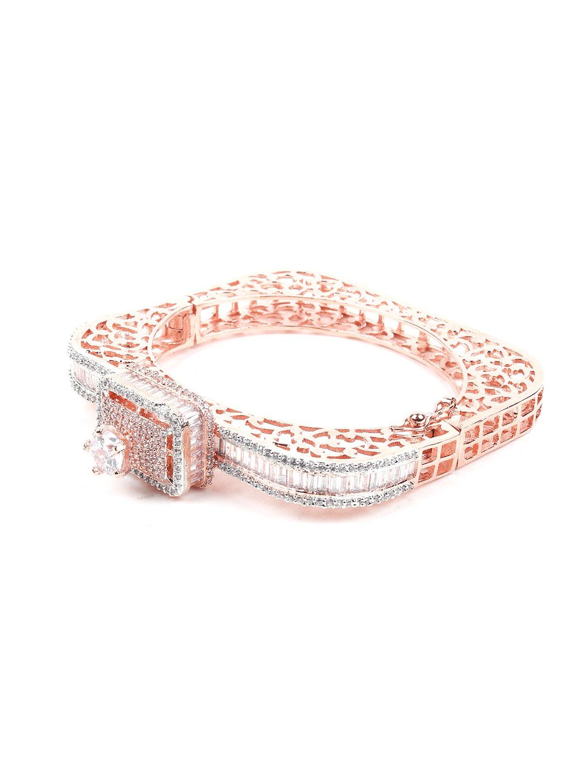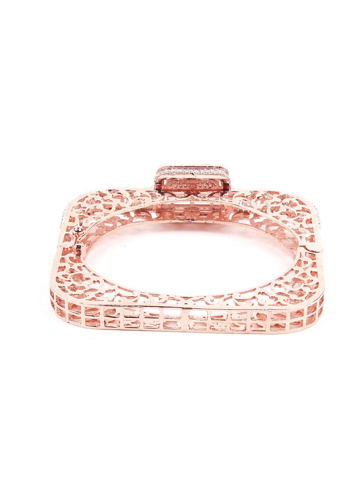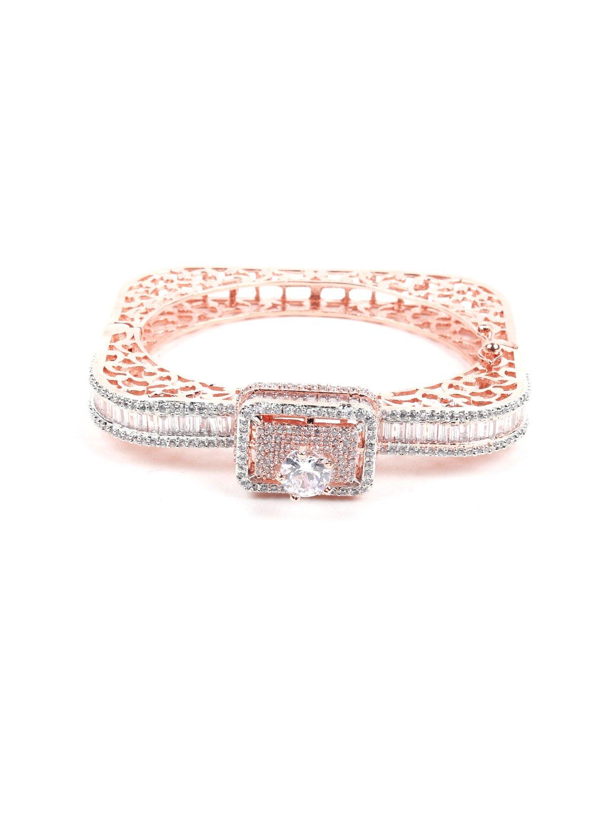 This stunning bracelet has a square-shaped structure heavily embellished with crystals at the centre of it. It's light, it's beautiful, and it looks flawless no matter the occasion. Here's your perfect bracelet choice for a sharp, sophisticated look. Crafted with precision, this is your go-to bracelet for all things pretty.Product detail: