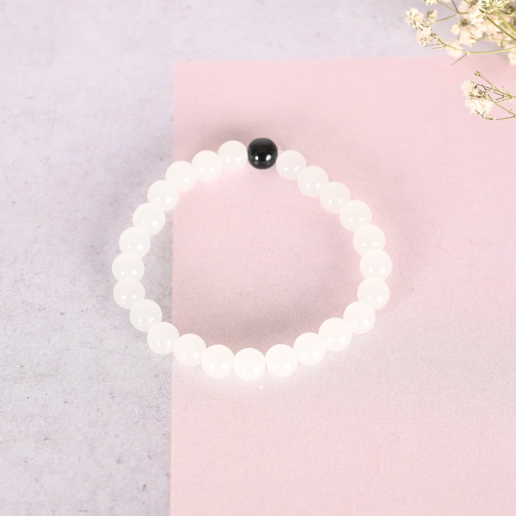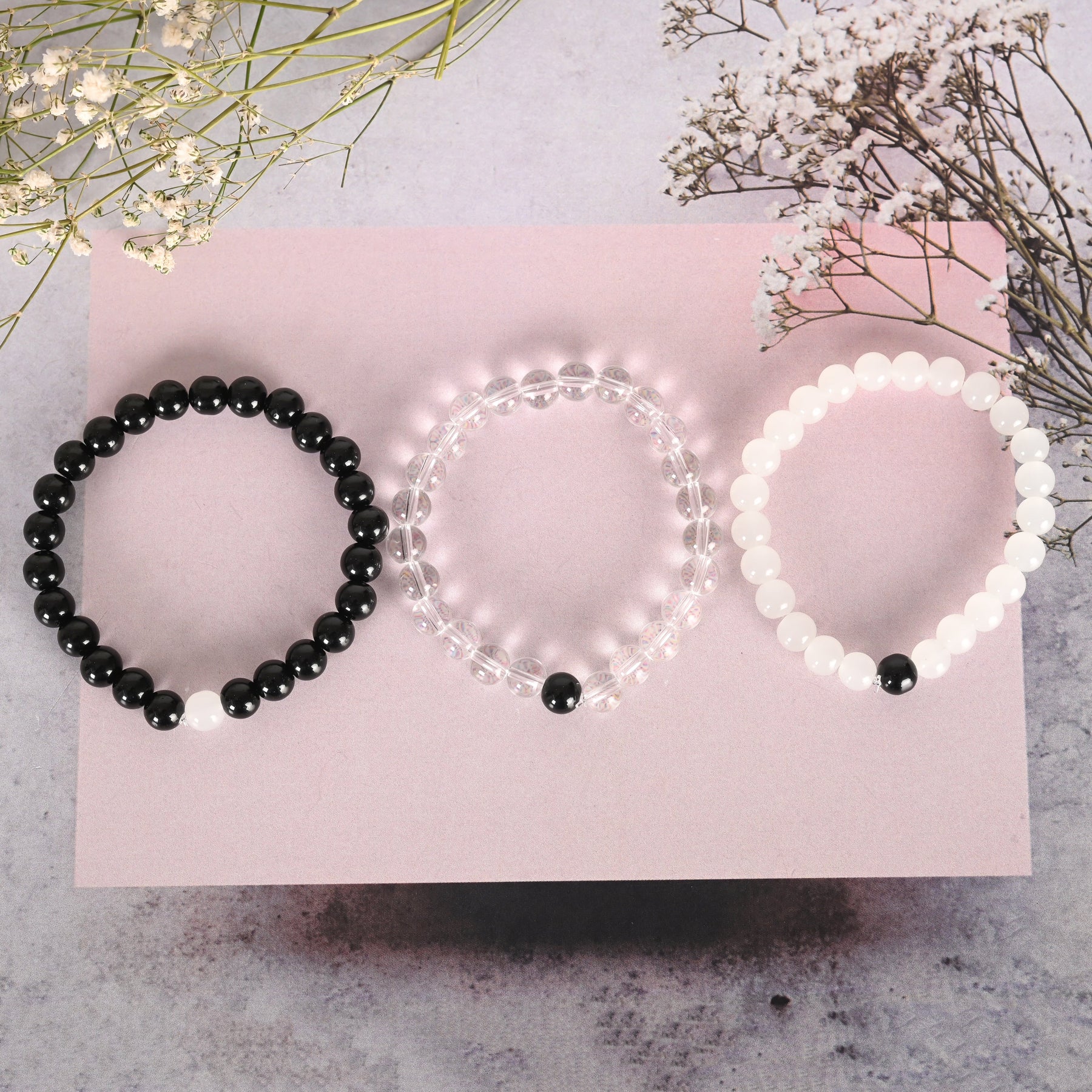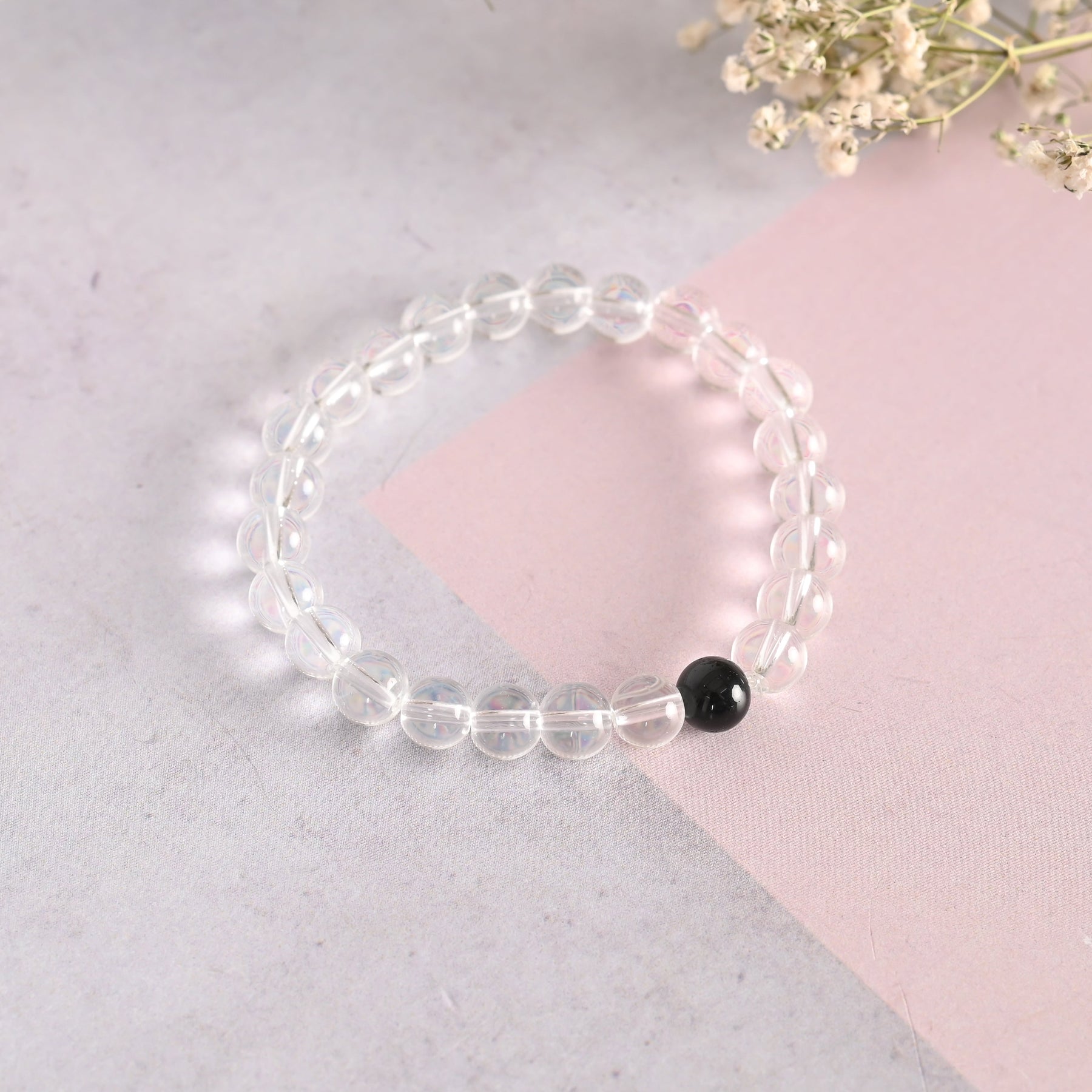 Unisex Transparent & White & Black Marbel Crystal Elasticated Bracelet