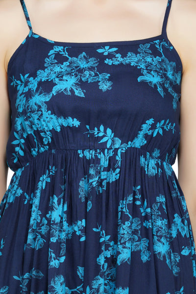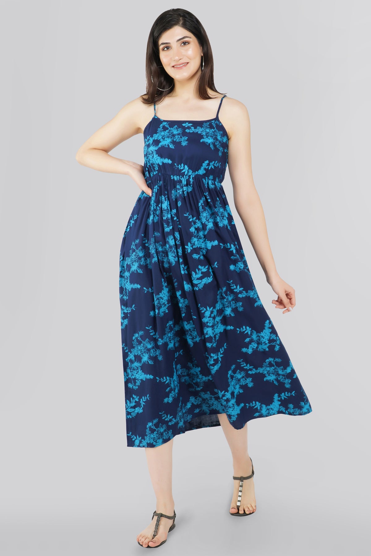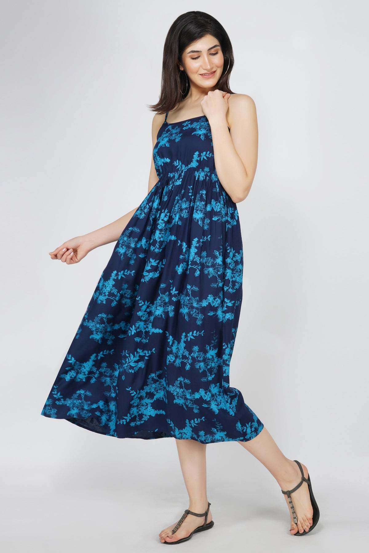 Top Details : Length :46Inches Shape :A-Line Fabric :Rayon Color :Blue Work/Pattern :Printed Neck Line :Round