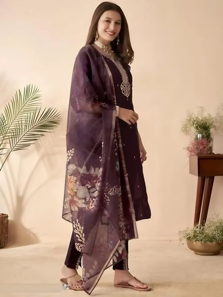 Party Wear Embroidery Worked Kurta With Pant And Duppata Set
